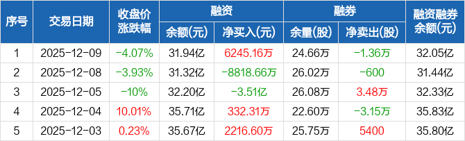 和而泰:融资净买入6245.16万元,融资余额31.94亿元(12-09)