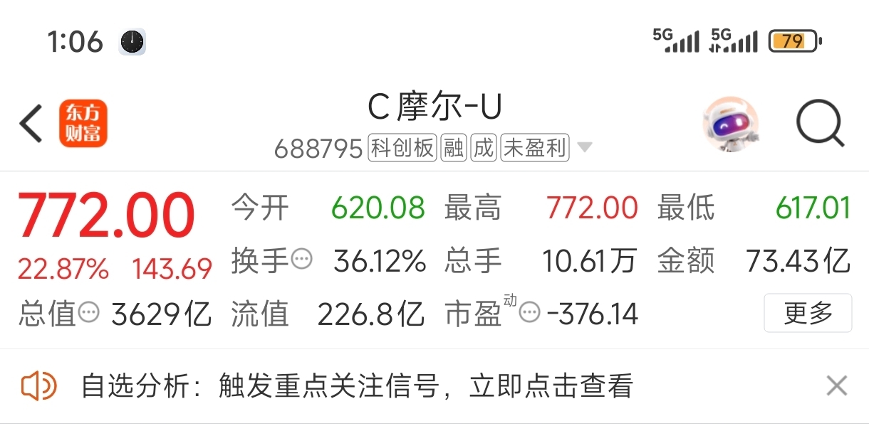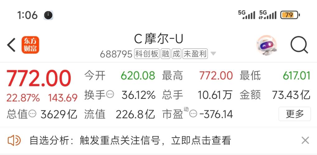 和而泰持有摩尔430万股,摩尔一股771还在涨啊!躺盈!!!纯利润三十五亿元和而泰买的摩尔,是强势龙头股