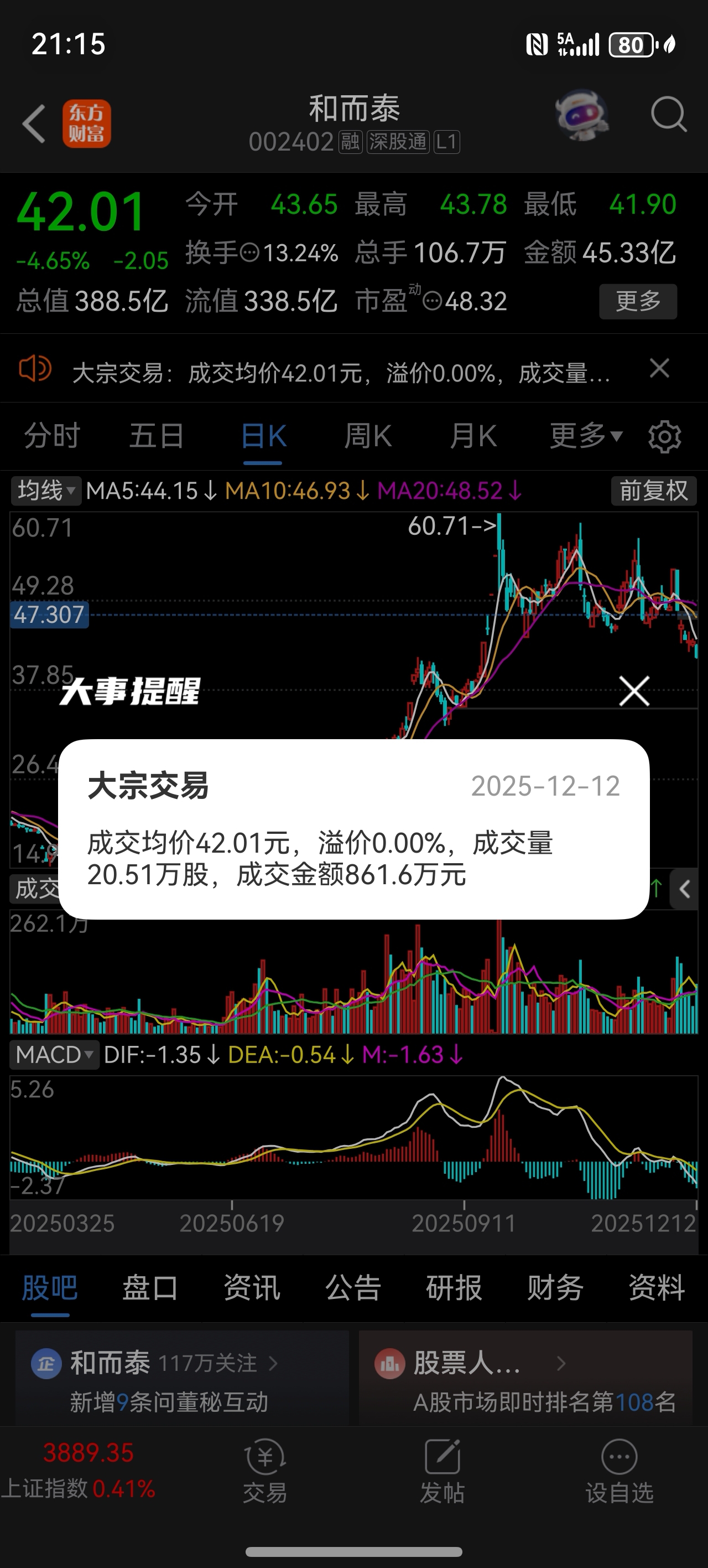 $和而泰(SZ002402)$ 谁尾盘的大宗交易?