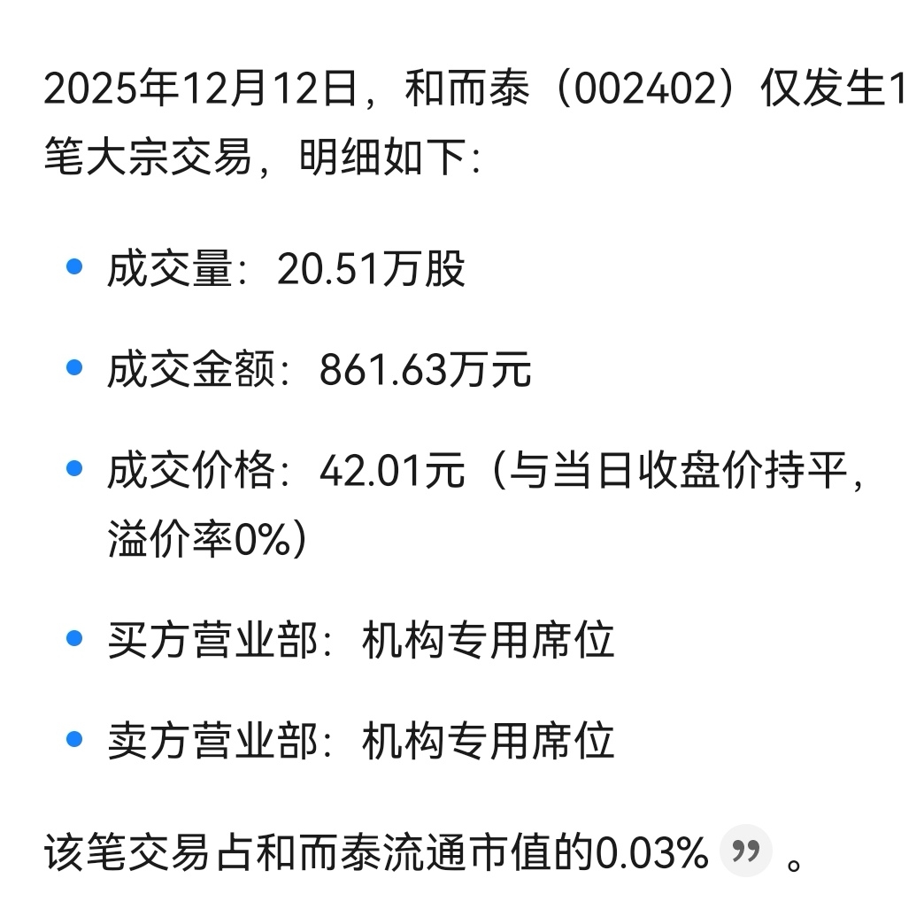 $和而泰(SZ002402)$ 机构之间大宗交易