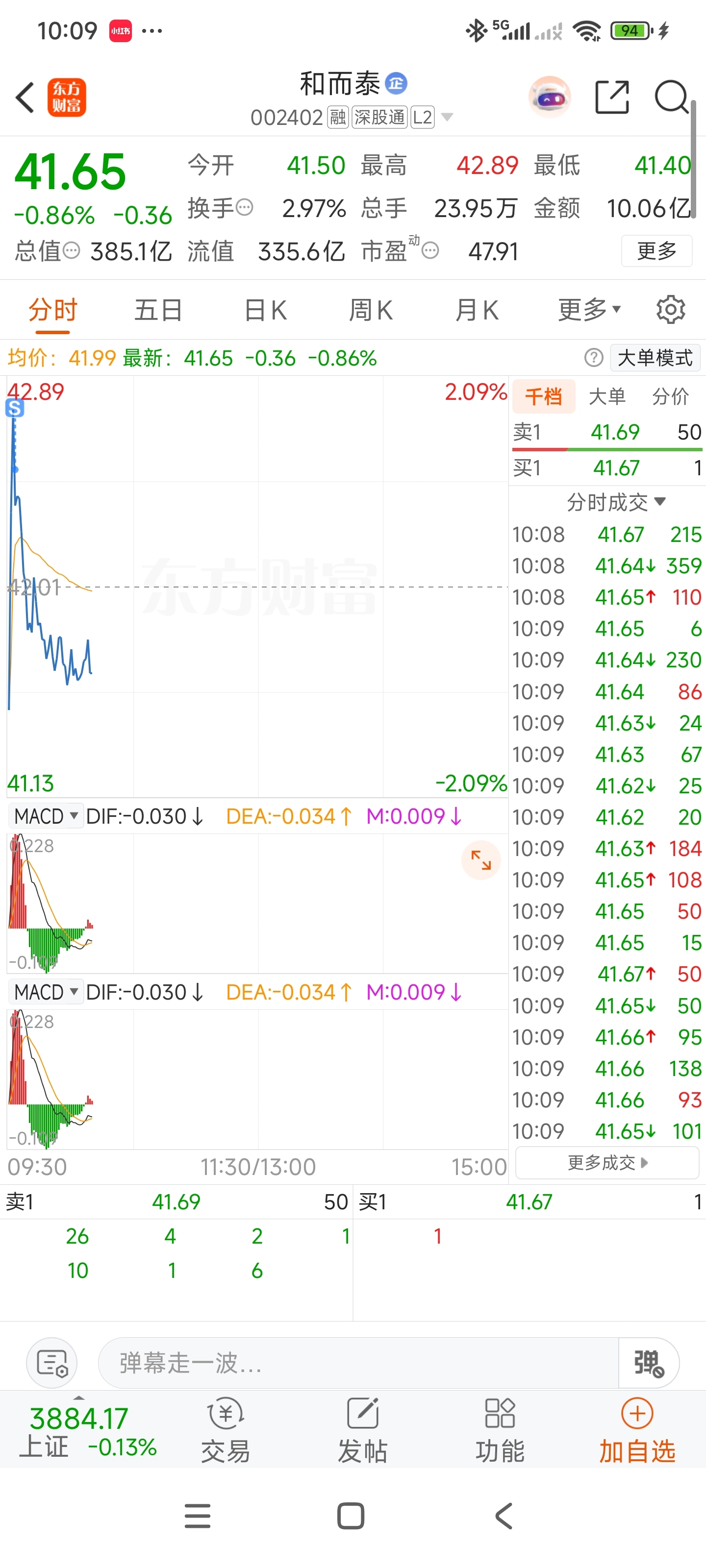$和而泰(SZ002402)$ 我给大家的建议是别想着它涨,就认为他跌,他能红的时候抓紧做t