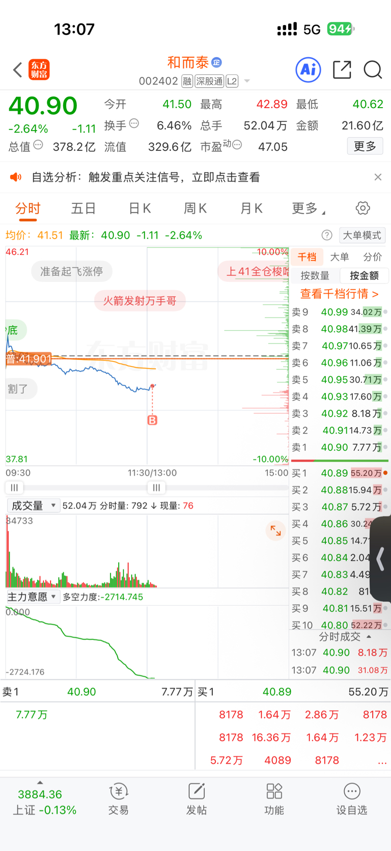 $和而泰(SZ002402)$ 打个底仓5万股