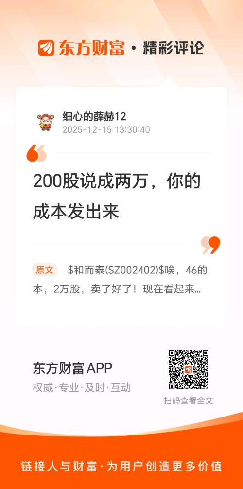 //@细心的薛赫12 :200股说成两万,你的成本发出来