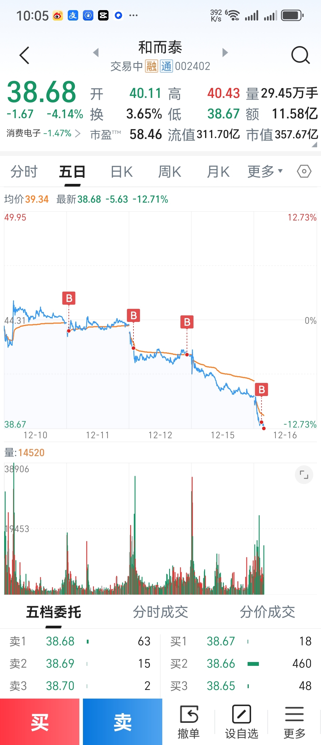 $和而泰(SZ002402)$ 深不见底啊!越买亏越多