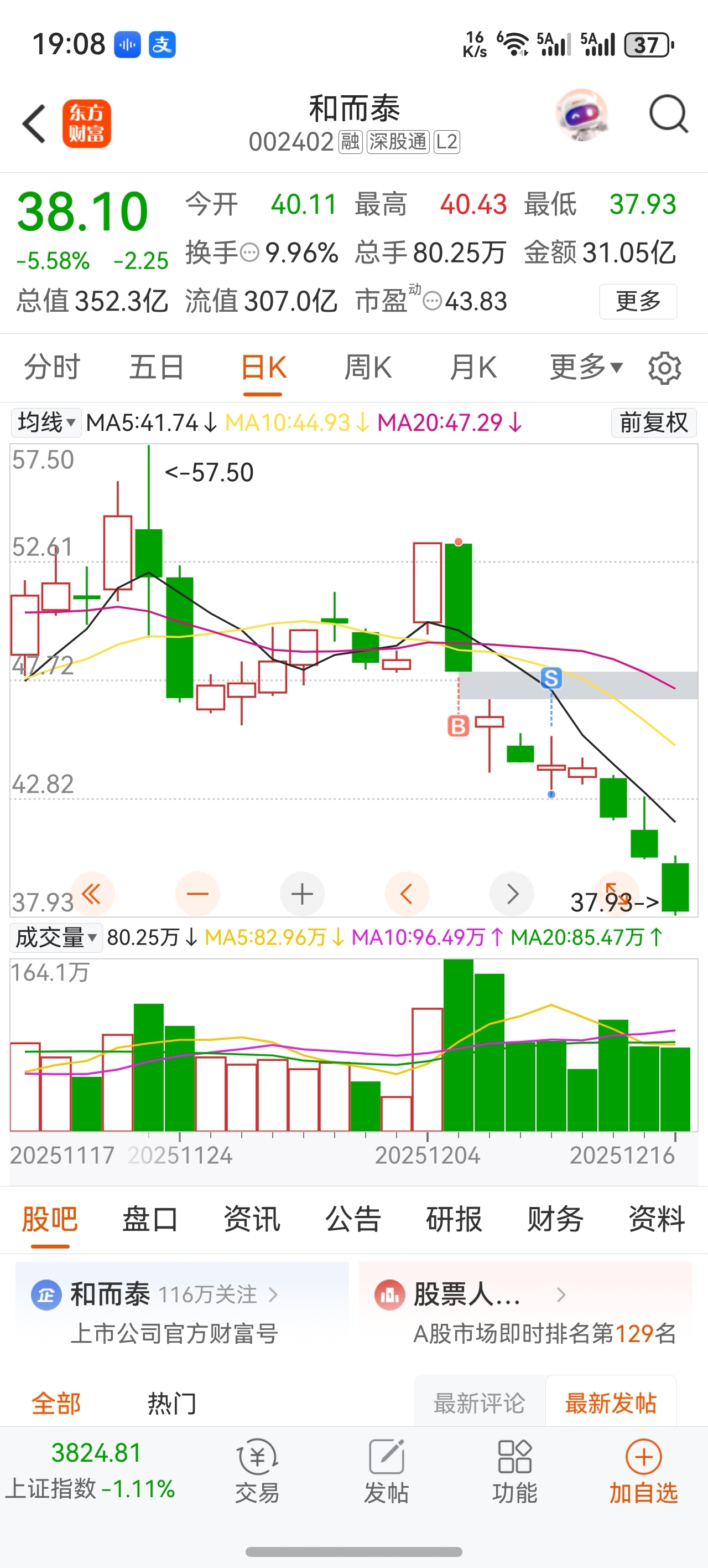 $和而泰(SZ002402)$ 真头铁啊,都在死扛?我亏20个点就跑路了还好跑了。不然还得出血