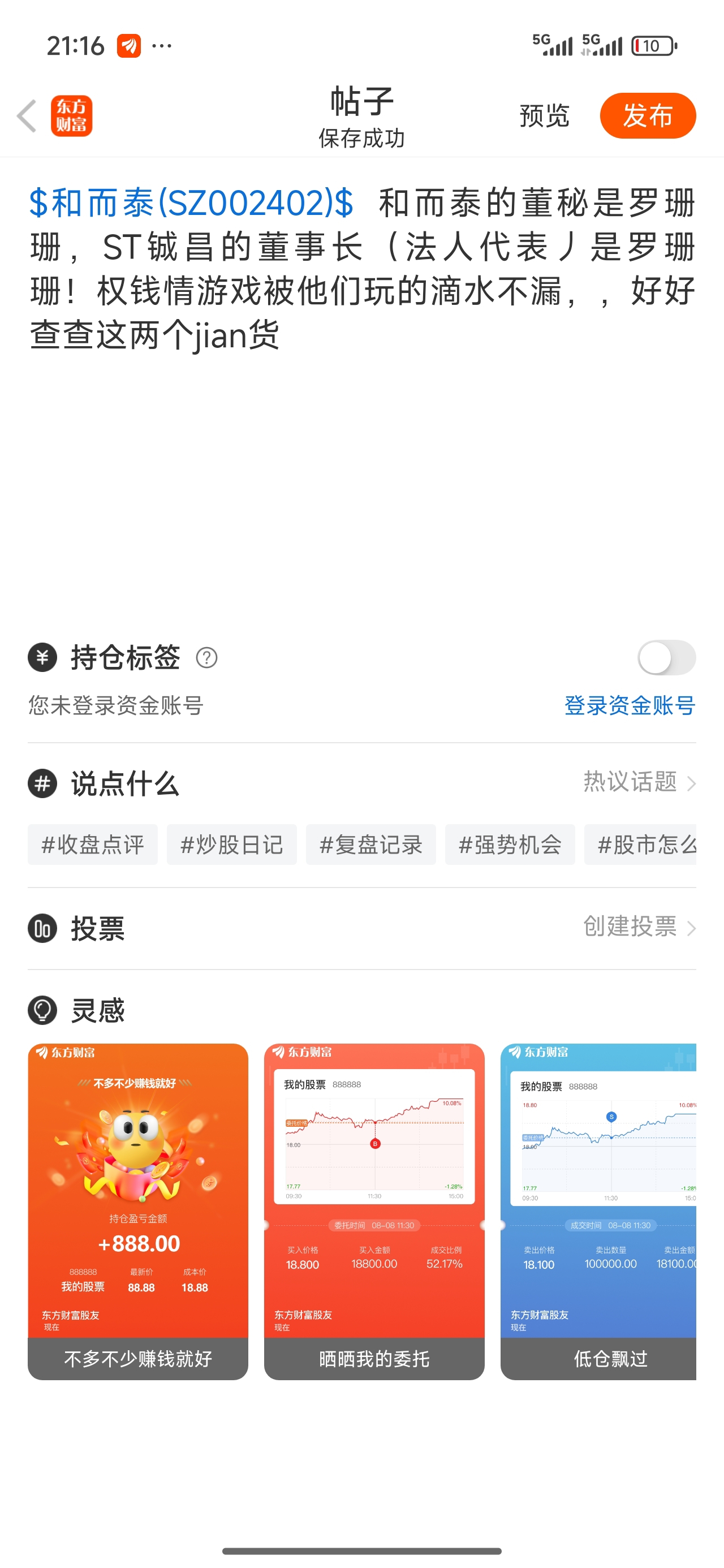 温馨提示: 1.根据《证券法》规定,禁止编造、传播虚假信息或者误导性信息,扰乱证券市场;2.用户在本社区发表的所有资料、言论等仅代表个人观点,与本网站立场无关,不对您构成任何投资建议。用户应基于自己的独立判断,自行决定证券投资并承担相应风险。《东方财富社区管理规定》