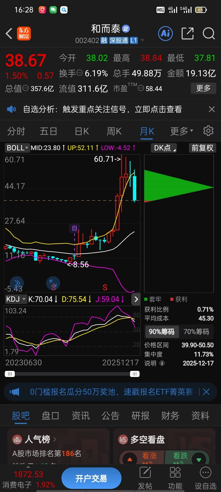 $和而泰(SZ002402)$ 月线指标没修复,今天反弹为一日游的概率大