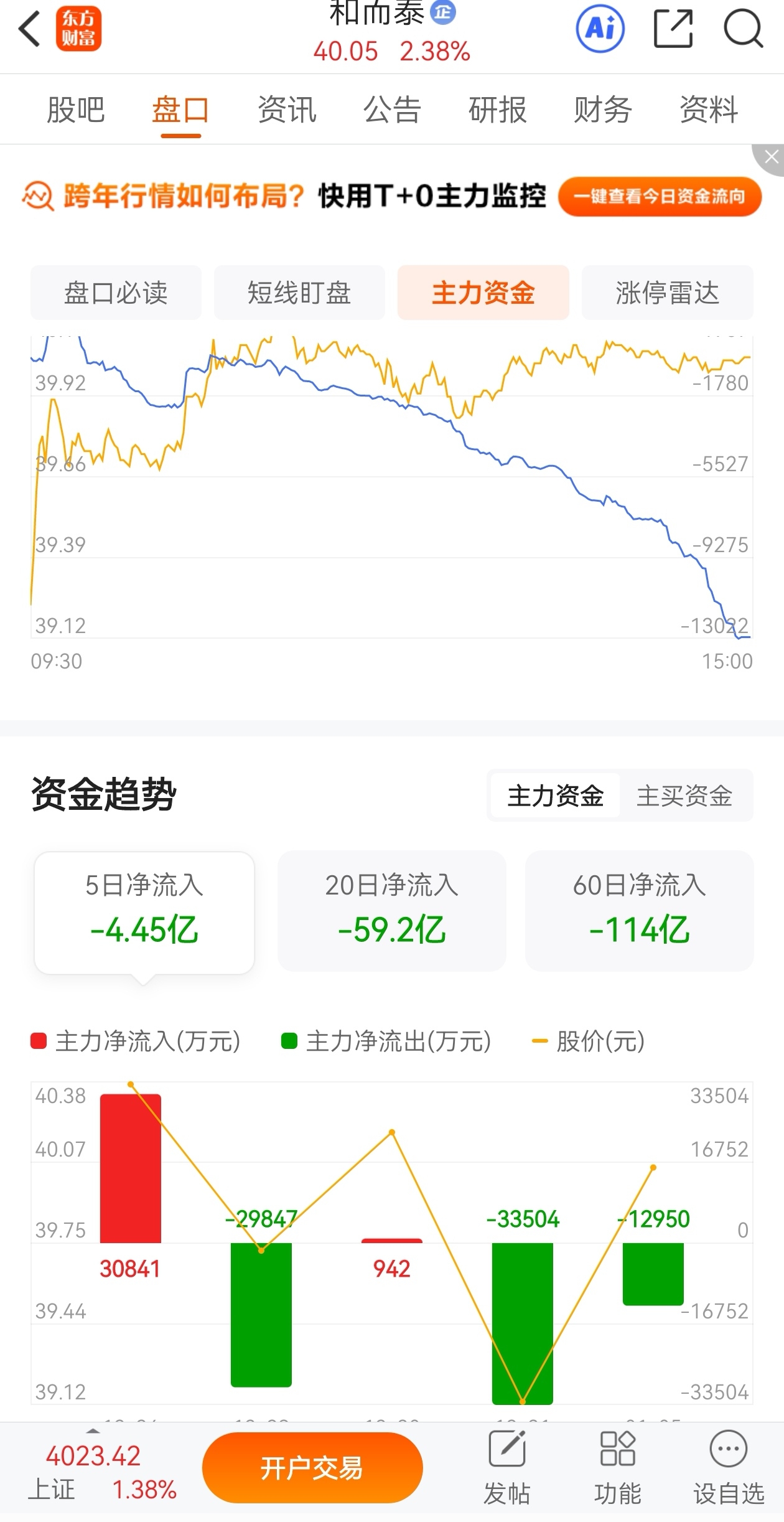 $和而泰(SZ002402)$ 20天资金流出59亿多,60天114亿是什么天大的雷在等着