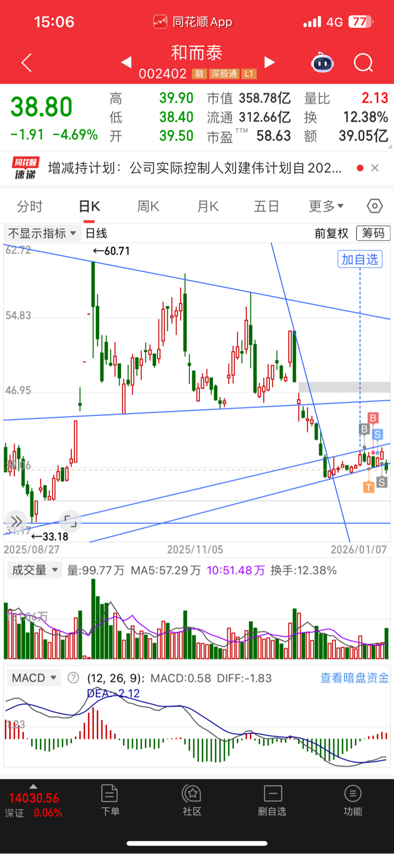 $和而泰(SZ002402)$ 大盘要不是这样涨,对自己的所谓技术还是有点信心的,大盘这样涨就是选股逻辑出了问题,紧紧局限在图形结构里面了……