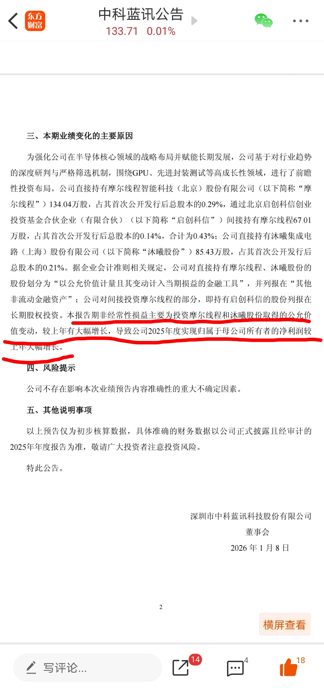 兄弟们,如何看待同样持有摩尔线程的中科蓝讯的归母净利润增长?