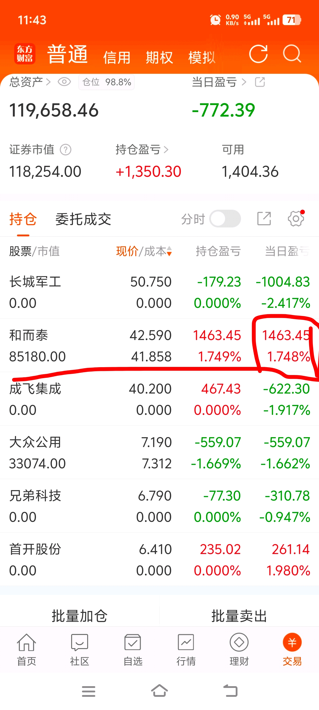 +4.5%进的能不能搞个+8%收盘啊大盘这么红大家都在捡钱多少让我也赚一点点呀