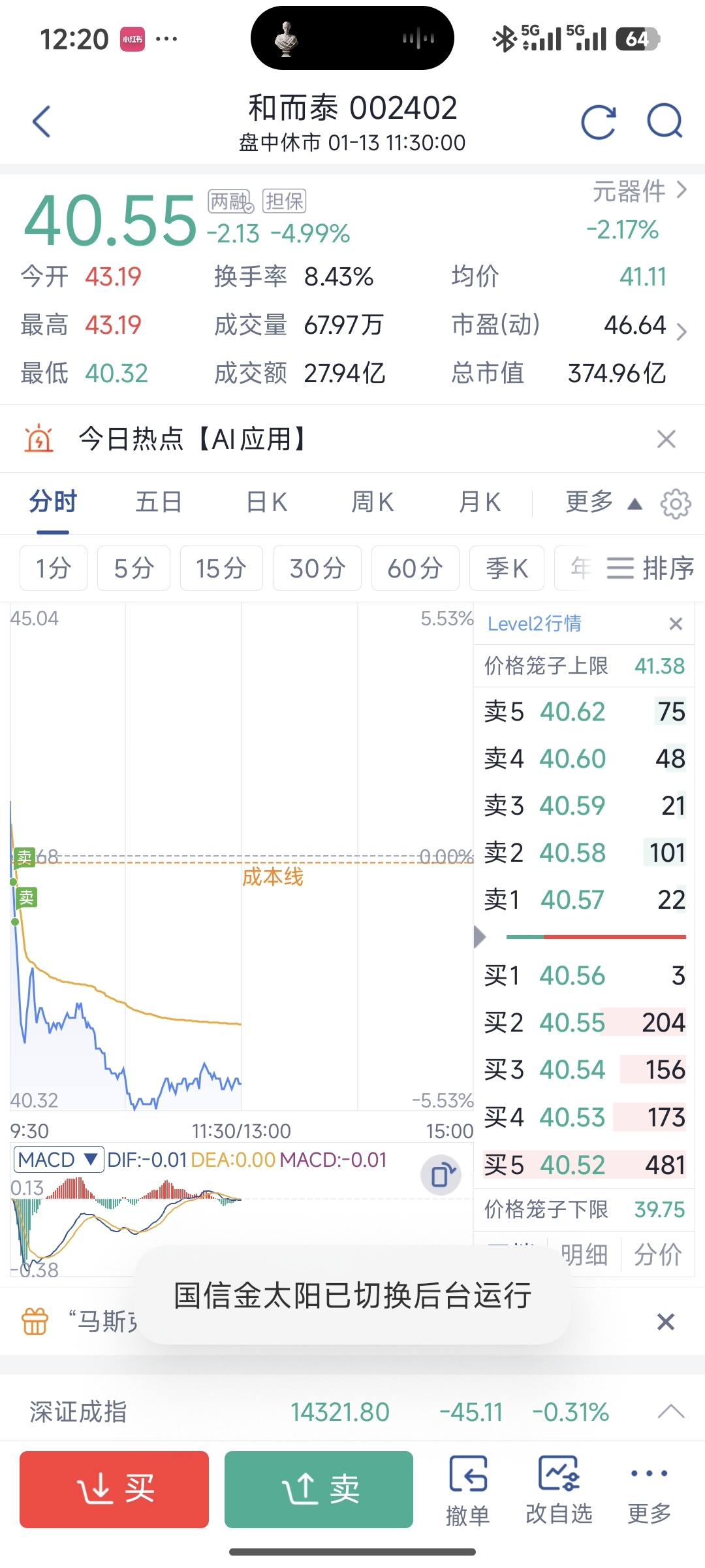 $和而泰(SZ002402)$ 今天最聪明的操作,进了山子