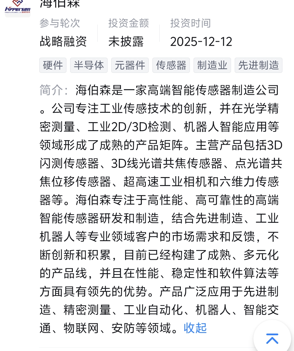 $和而泰(SZ002402)$ 和而泰布局人形机器人,和汉宇集团投资海伯森