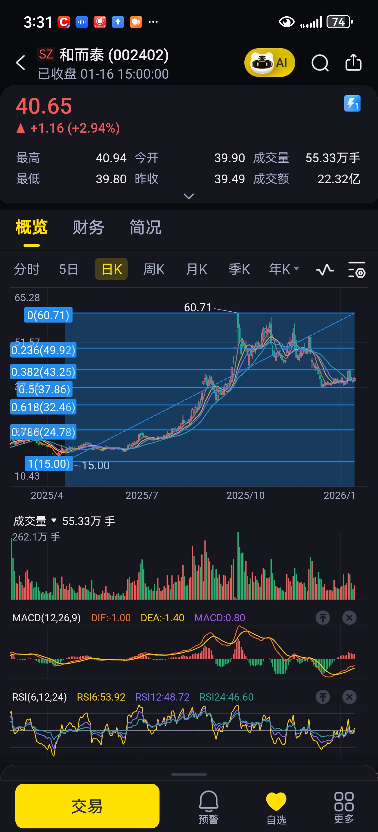 $和而泰(SZ002402)$ 技术分析看它是否到位大周期0.50获得支撑,小周期反弹后回踩获得支撑,持股待新高。