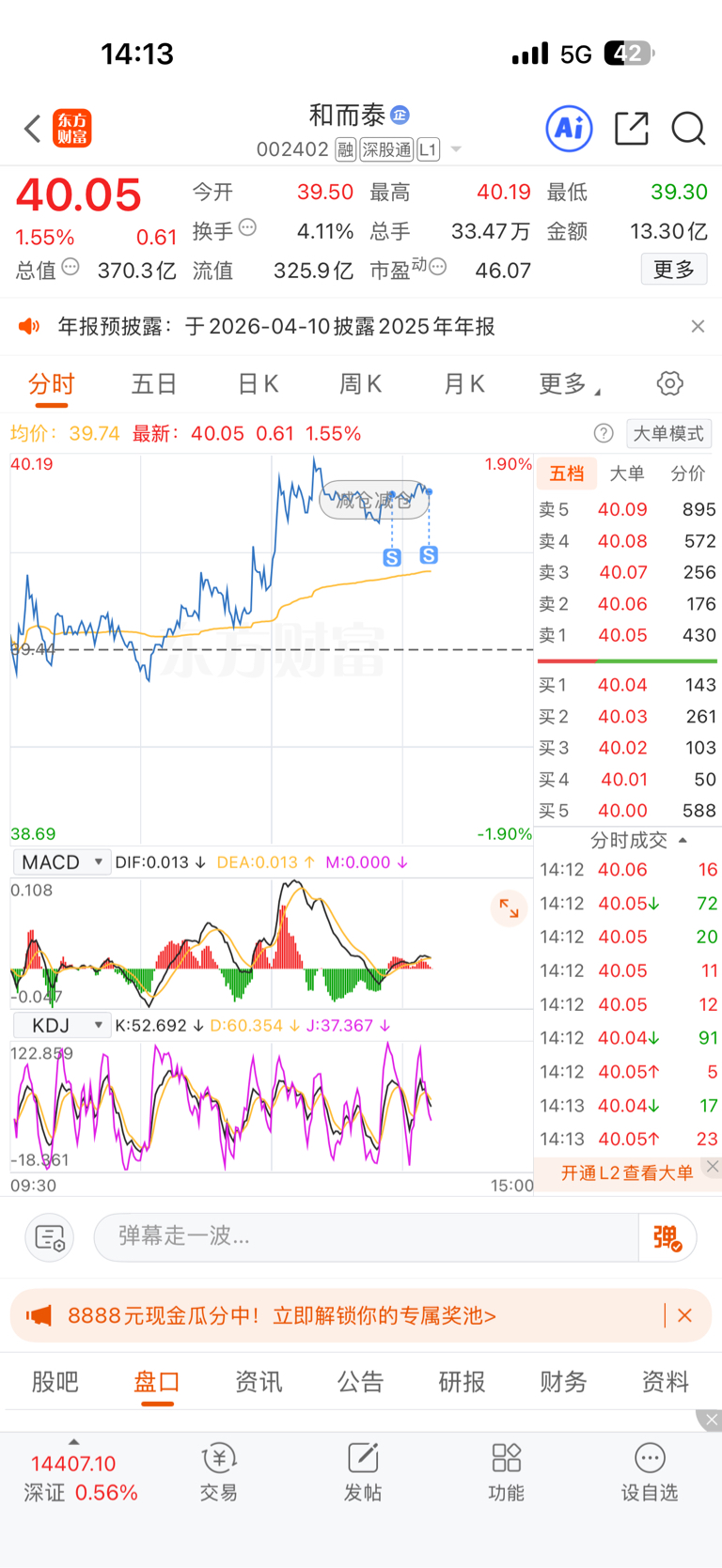 $和而泰(SZ002402)$ 我卖完了,你可以起飞了