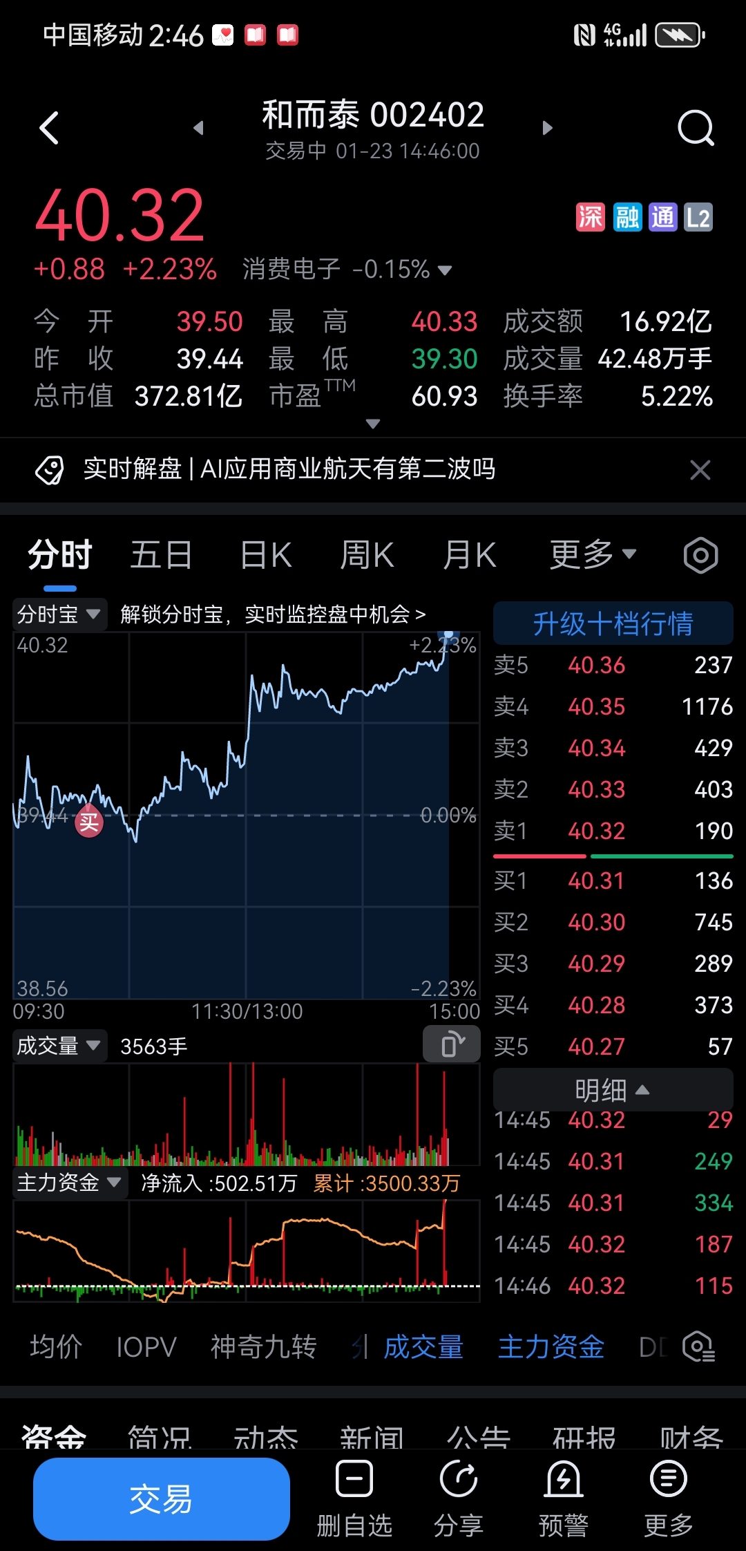 $和而泰(SZ002402)$ 今天又加到了半仓了!