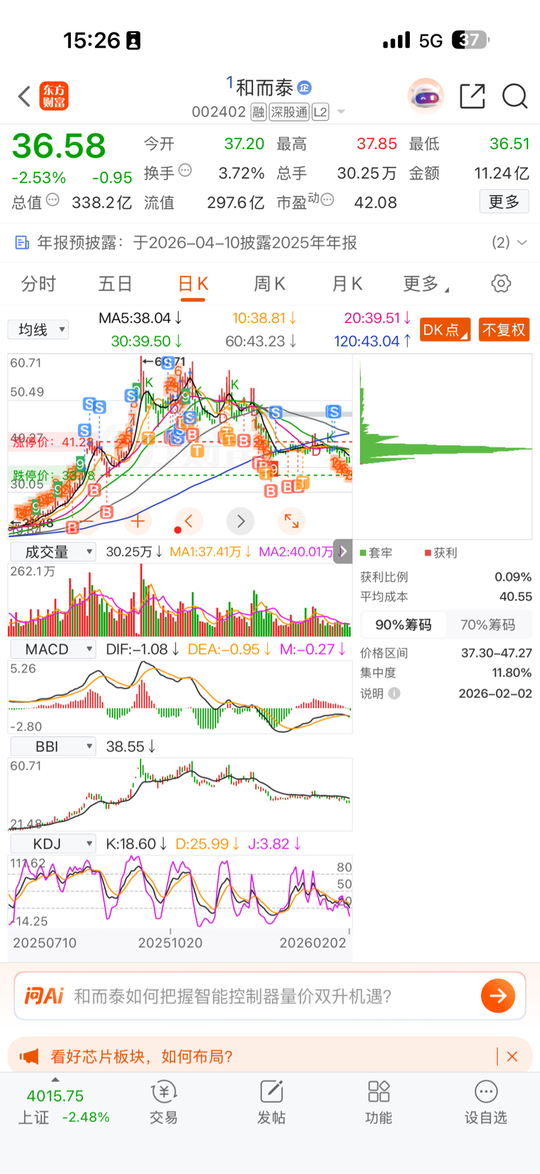 $和而泰(SZ002402)$ 虽利润回撤很多,但是真的提醒过很多次了,尽早跑路,什么时候出倍量在介入。大盘今天砸盘短期已无任何利好,财报预期也给了,所以没什么可以期待的了。忠言逆耳,空仓也比套在这里难受要好。不懂得割肉无非不想承认自己失败而已,但是承认失败之后就会变得豁然开朗。