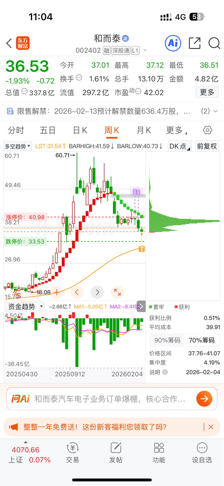 $和而泰(SZ002402)$ 跌到三十元 我考虑满仓操作!
