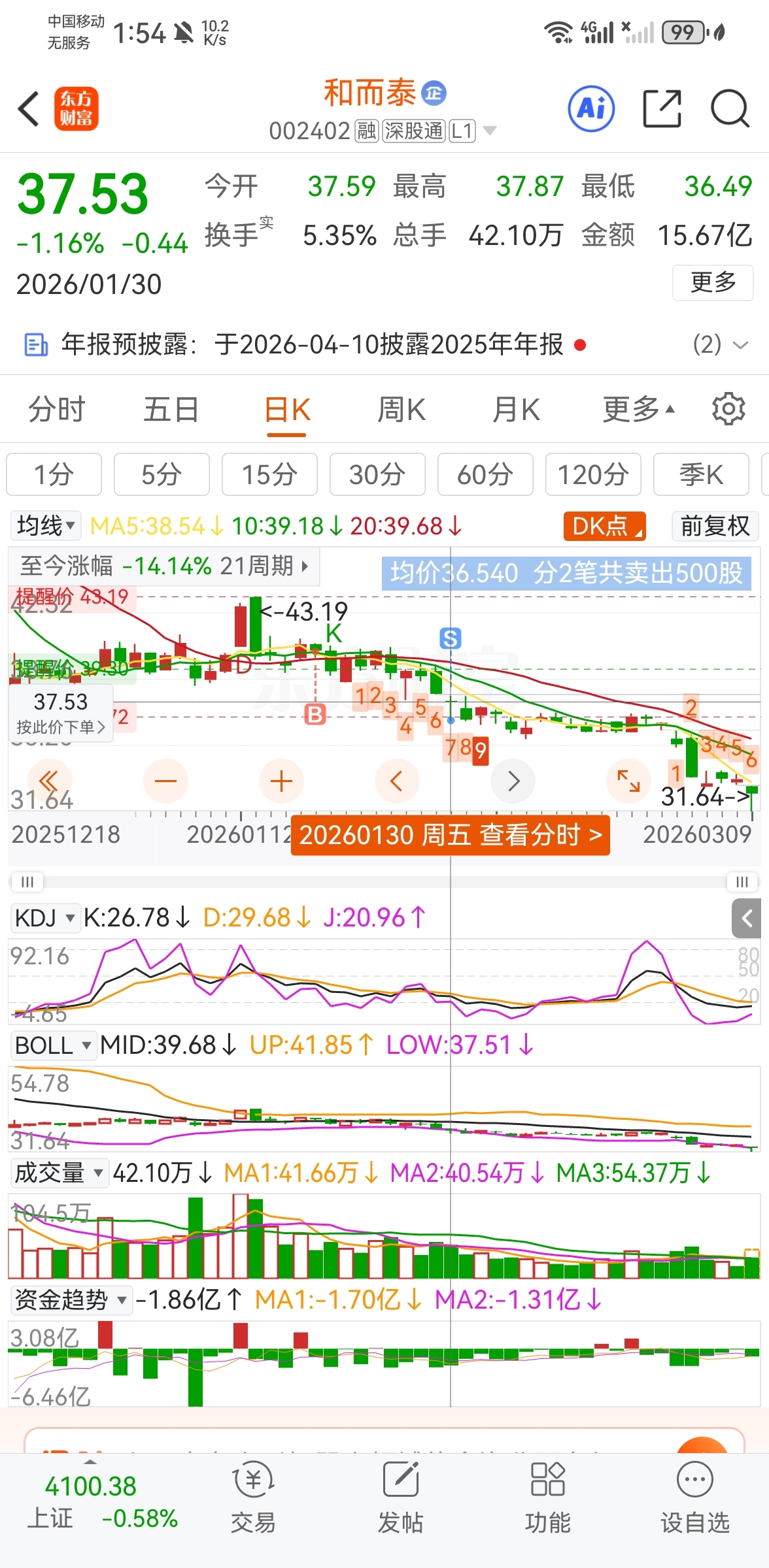 $和而泰(SZ002402)$ 哎我走了之后还跌了15个点 真难