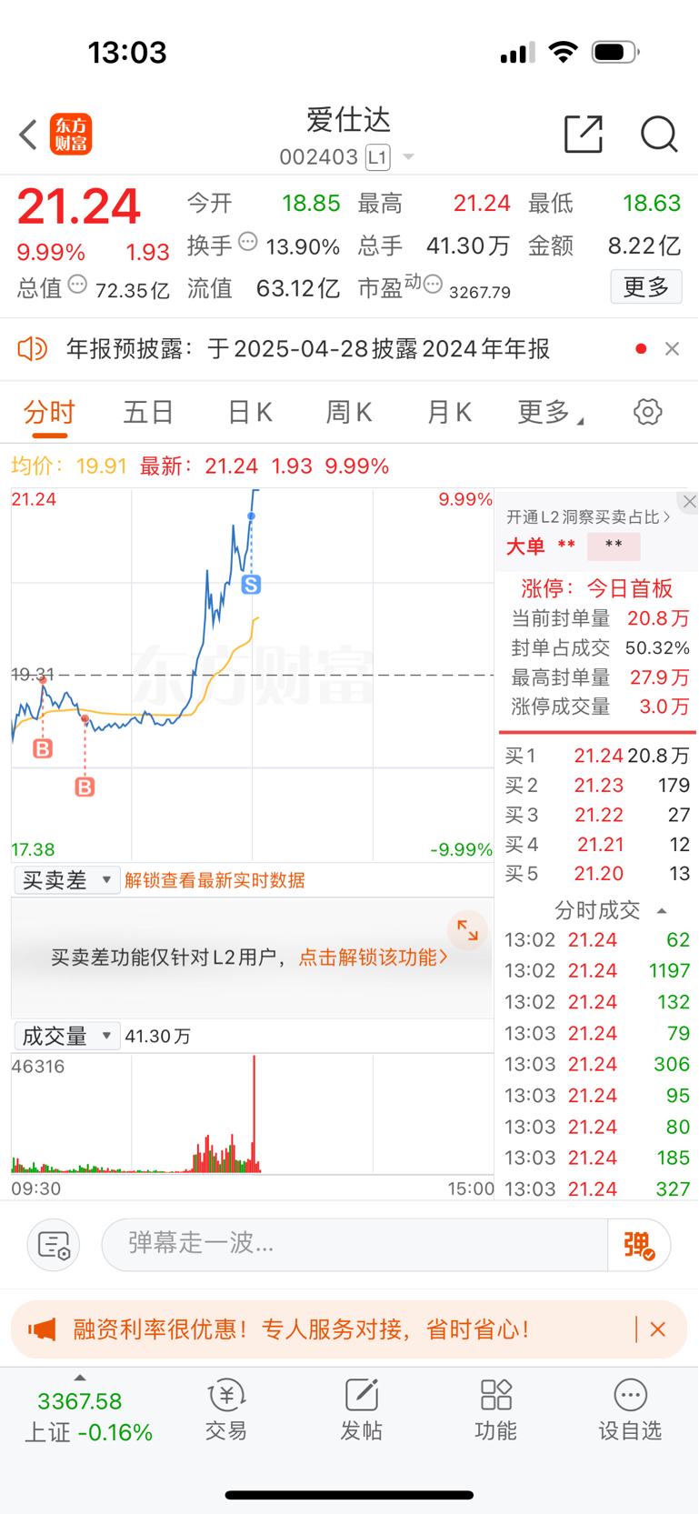 $爱仕达(SZ002403)$ 卖飞了提前挂的单