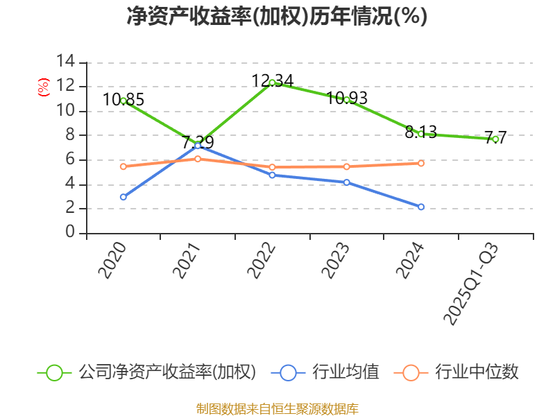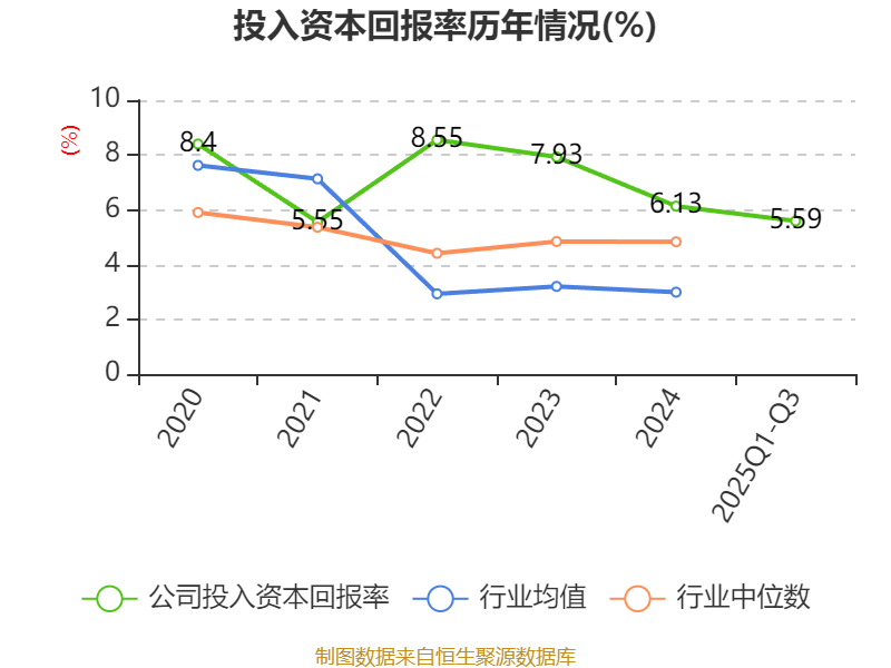 盈利能力方面, 2025年前三季度公司加权平均净资产收益率为7.7%,同比上升0.17个百分点。公司2025年前三季度投入资本回报率为5.59%,较上年同期下降0.07个百分点。