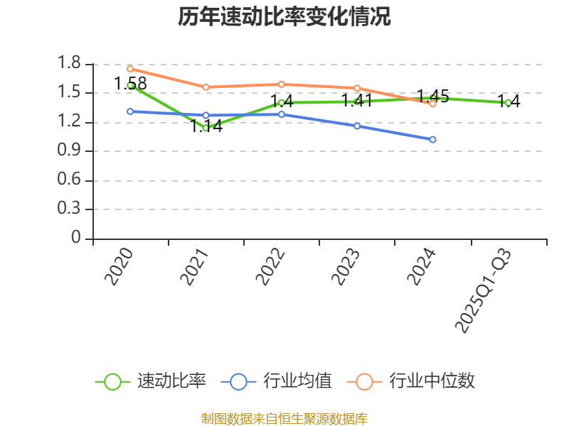 2025年前三季度,公司流动比率为1.8,速动比率为1.4。