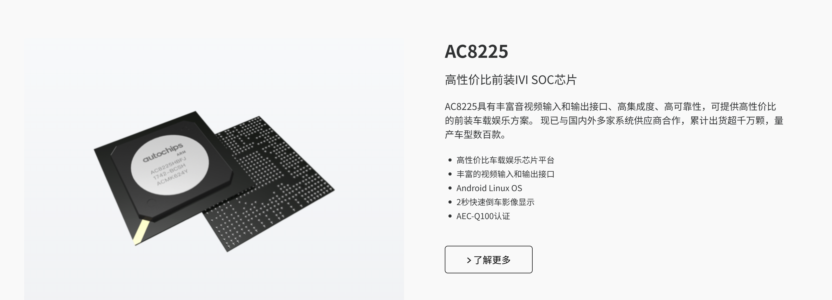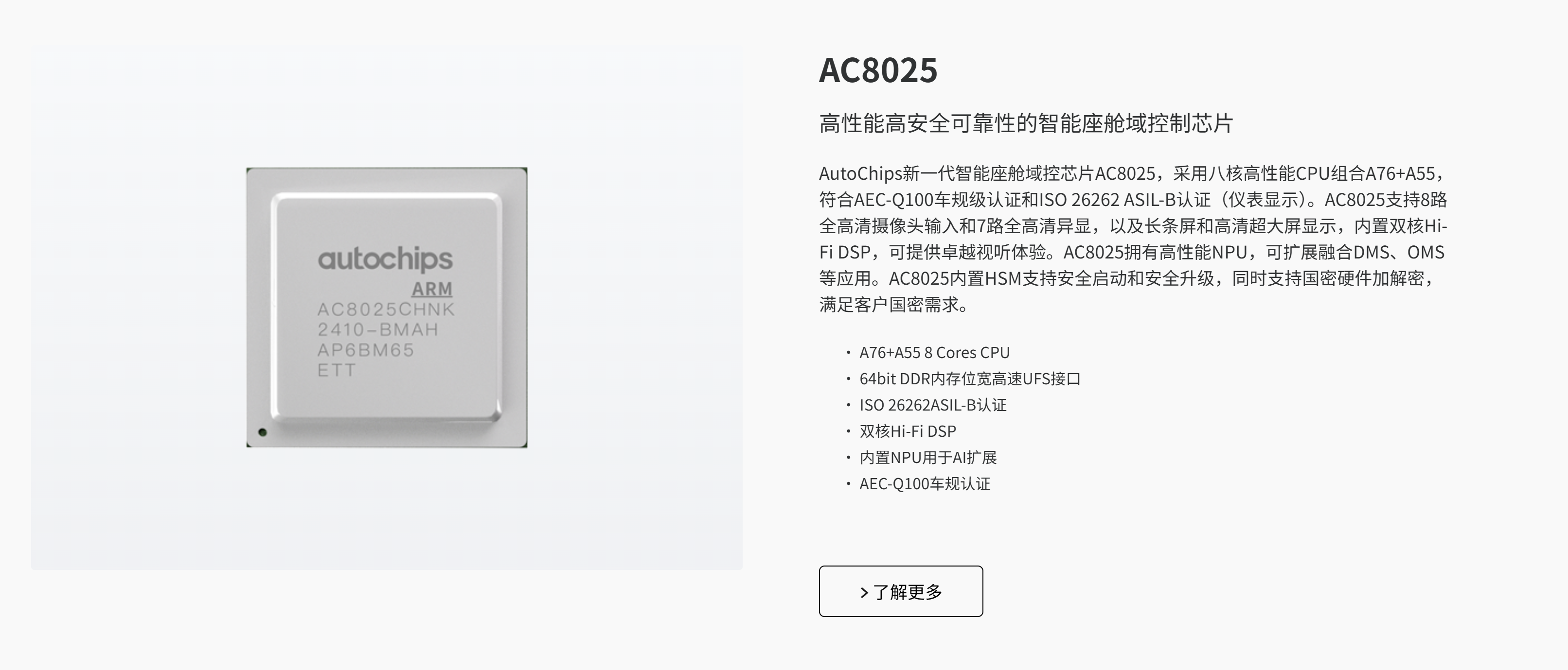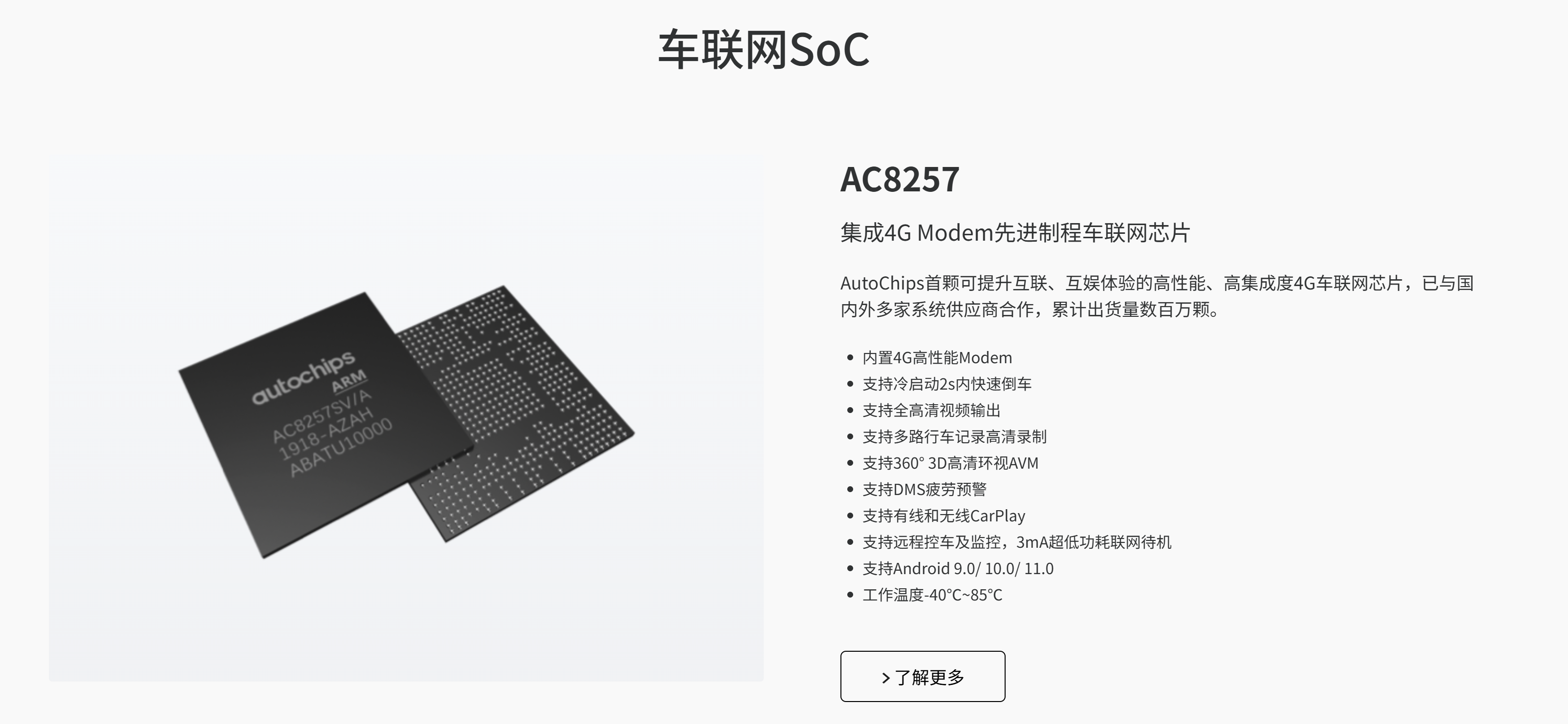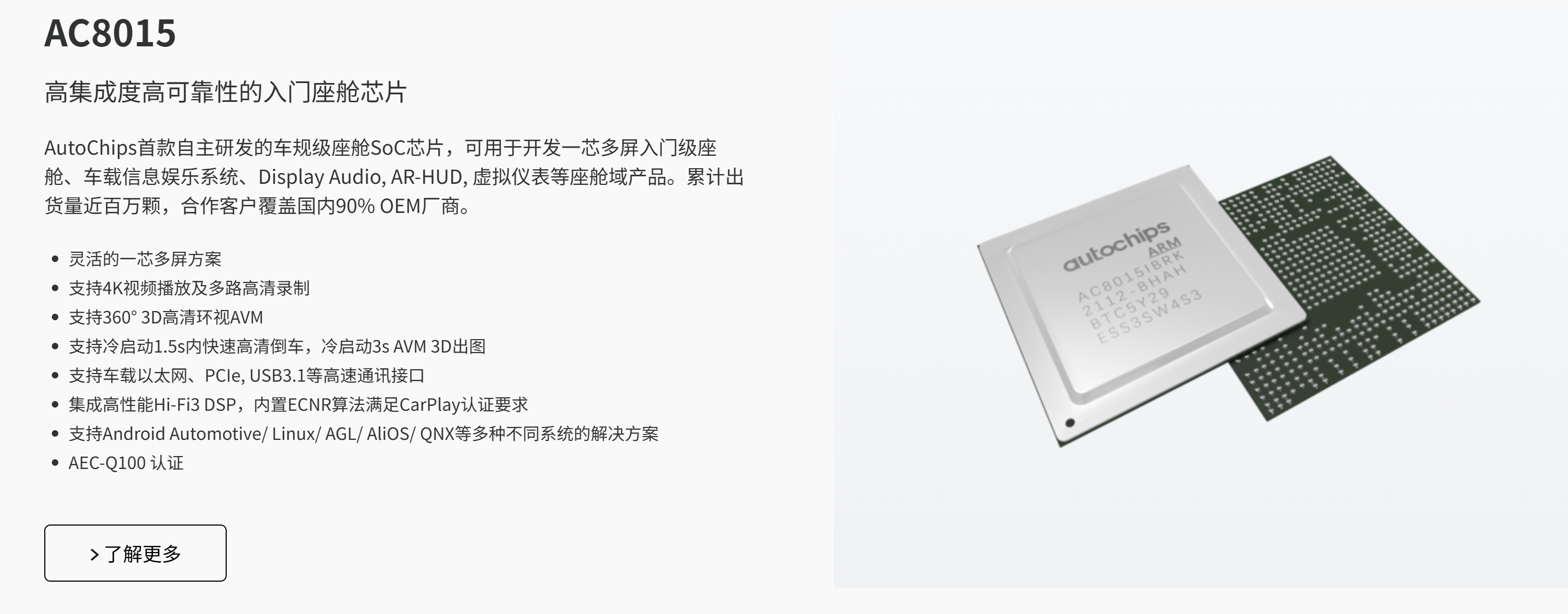 看了这么多说高通的,怎么没人提到高通的SOC业务啊!!!高通在国内除了手机业务以外,最大的业务就是汽车SOC了,和反垄断直接相关的是车联网SOC,业务量最大的是座舱的SOC,经常听到的8155,8255,8295等都是属于座舱SOC,四维的智联也是用的8155平台。然后杰发的主要业务就是车规mcu和座舱soc,这是真正的国产替代,其中AC8015,8025,8025AE属于座舱SOC,AC8257属于车联网SOC,这是真正的国产替代,杰发的车规级别的MCU和SOC在国内还是很能打的。