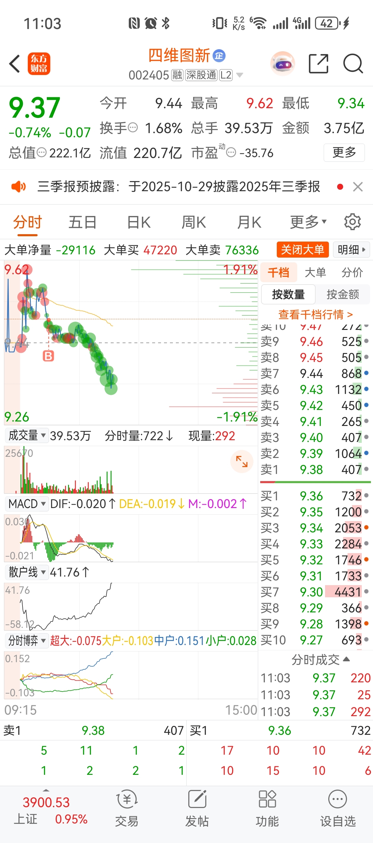 $四维图新(SZ002405)$ 大单出货挂灯笼,真的无语了随便买个都比这强