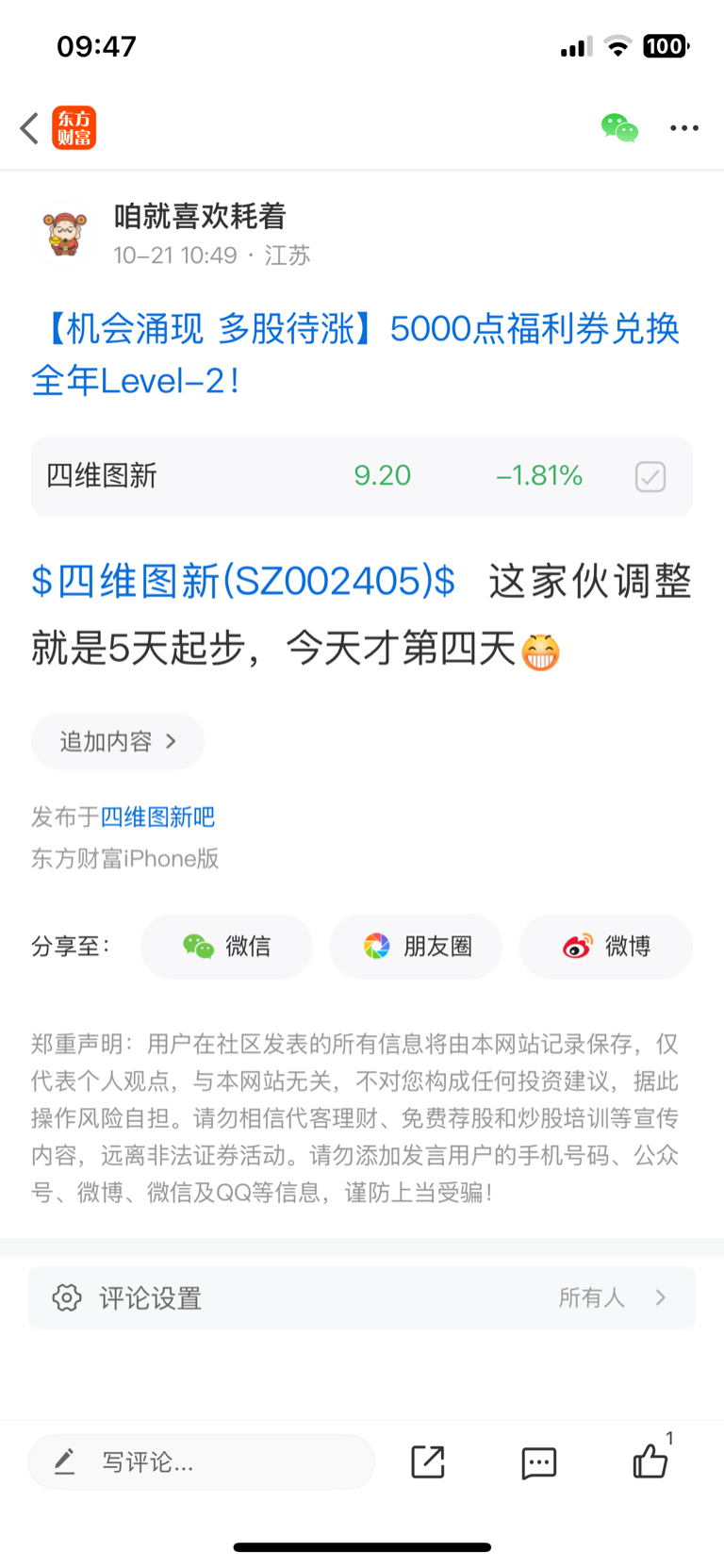 温馨提示: 1.根据《证券法》规定,禁止编造、传播虚假信息或者误导性信息,扰乱证券市场;2.用户在本社区发表的所有资料、言论等仅代表个人观点,与本网站立场无关,不对您构成任何投资建议。用户应基于自己的独立判断,自行决定证券投资并承担相应风险。《东方财富社区管理规定》