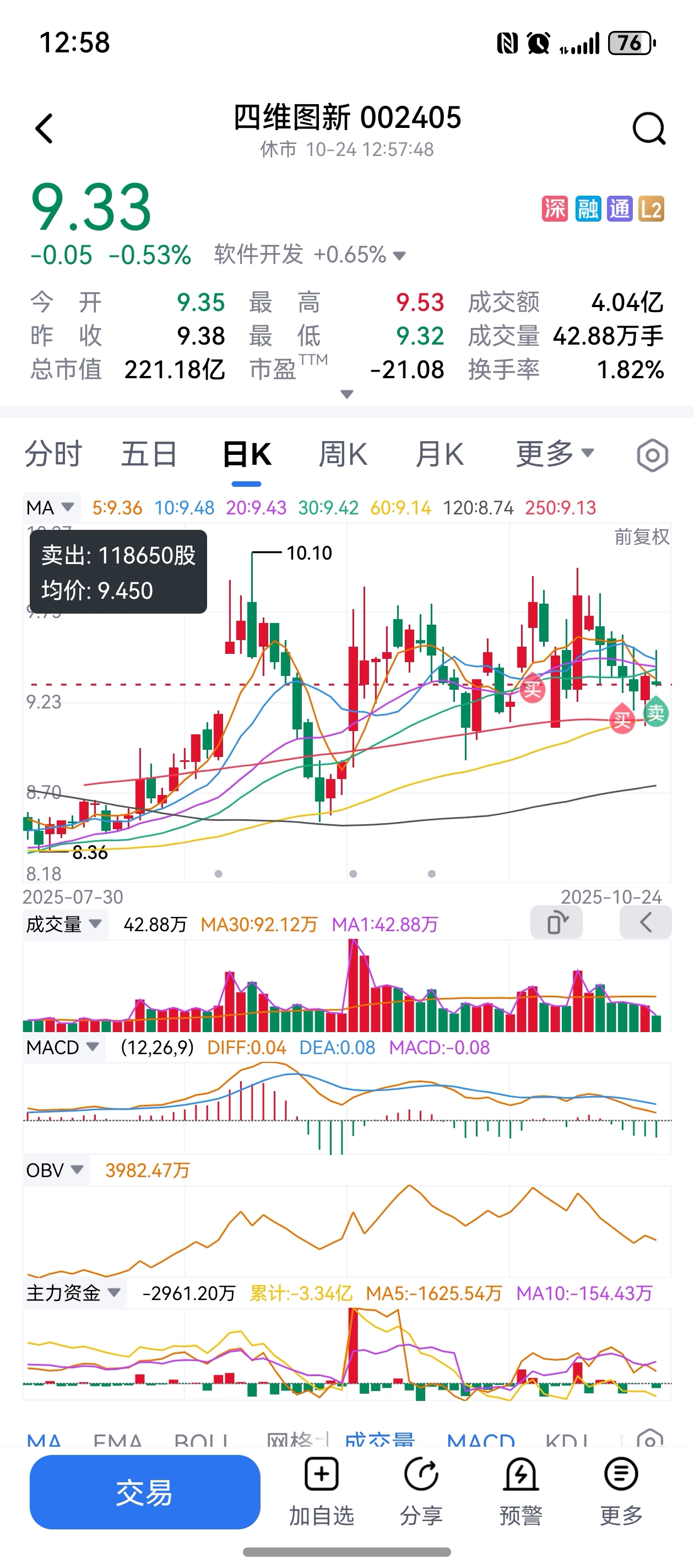 $四维图新(SZ002405)$ 实际形态已经走坏,拿了两周今天平盘出了,下一个更乖。