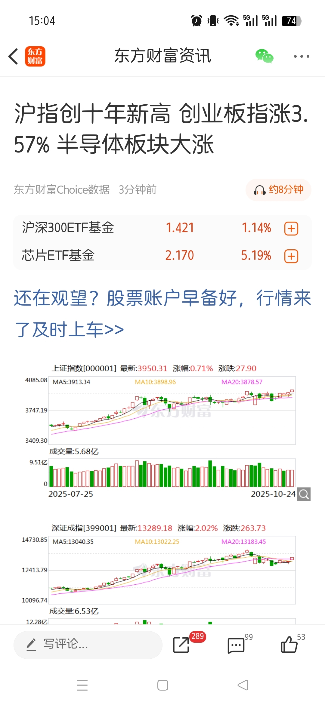 上证10年新高了,大家庆贺起来啊