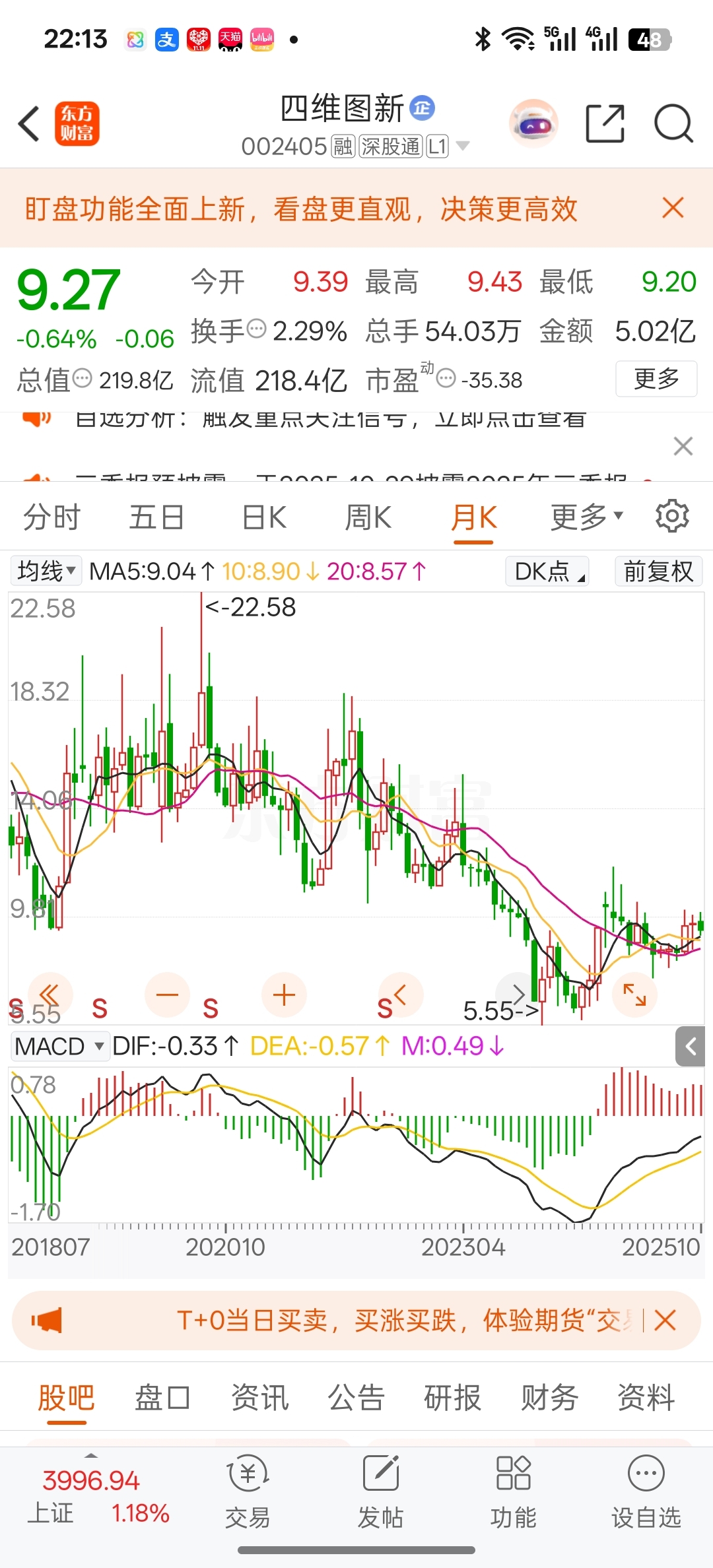 $四维图新(SZ002405)$ 月线头肩底,扎实得狠,跌无可跌,只能上不能下。