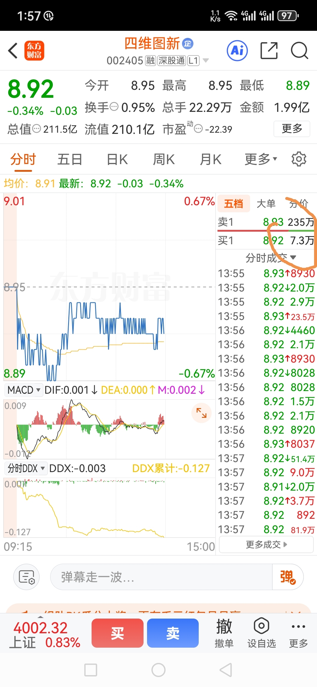 $四维图新(SZ002405)$ 看看这抛售!大盘再涨2000点四维图新也是弃票!