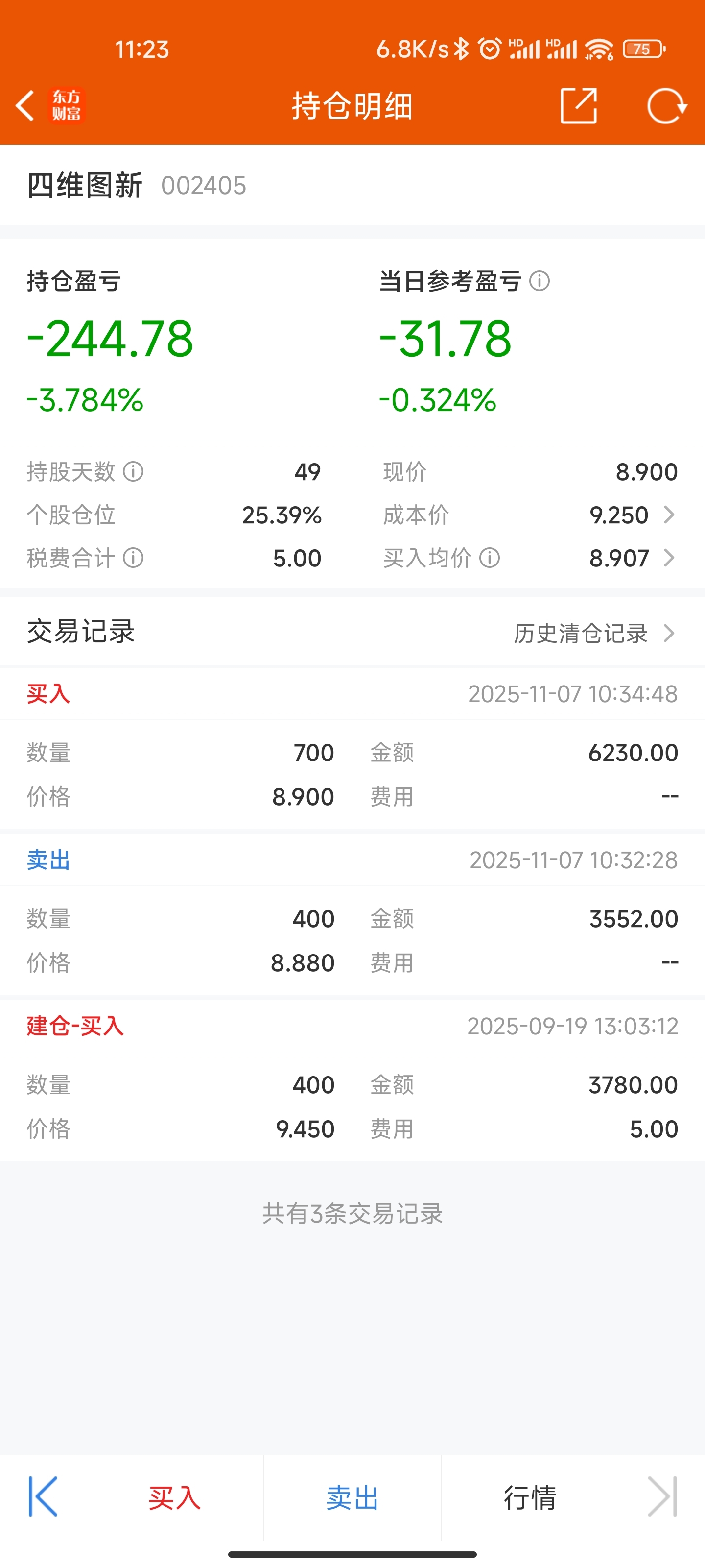 $四维图新(SZ002405)$ 哭死了,点错了亏损300块一天白干