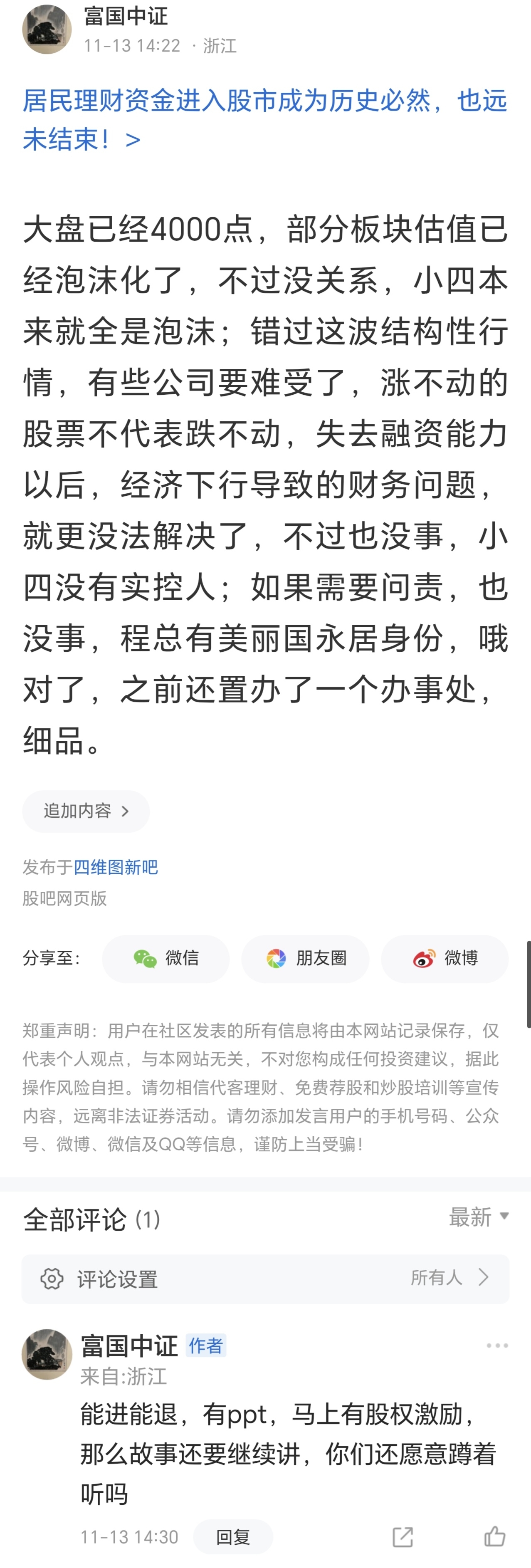 温馨提示: 1.根据《证券法》规定,禁止编造、传播虚假信息或者误导性信息,扰乱证券市场;2.用户在本社区发表的所有资料、言论等仅代表个人观点,与本网站立场无关,不对您构成任何投资建议。用户应基于自己的独立判断,自行决定证券投资并承担相应风险。《东方财富社区管理规定》