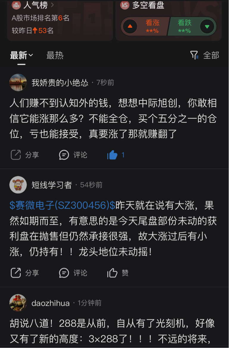 温馨提示: 1.根据《证券法》规定,禁止编造、传播虚假信息或者误导性信息,扰乱证券市场;2.用户在本社区发表的所有资料、言论等仅代表个人观点,与本网站立场无关,不对您构成任何投资建议。用户应基于自己的独立判断,自行决定证券投资并承担相应风险。《东方财富社区管理规定》