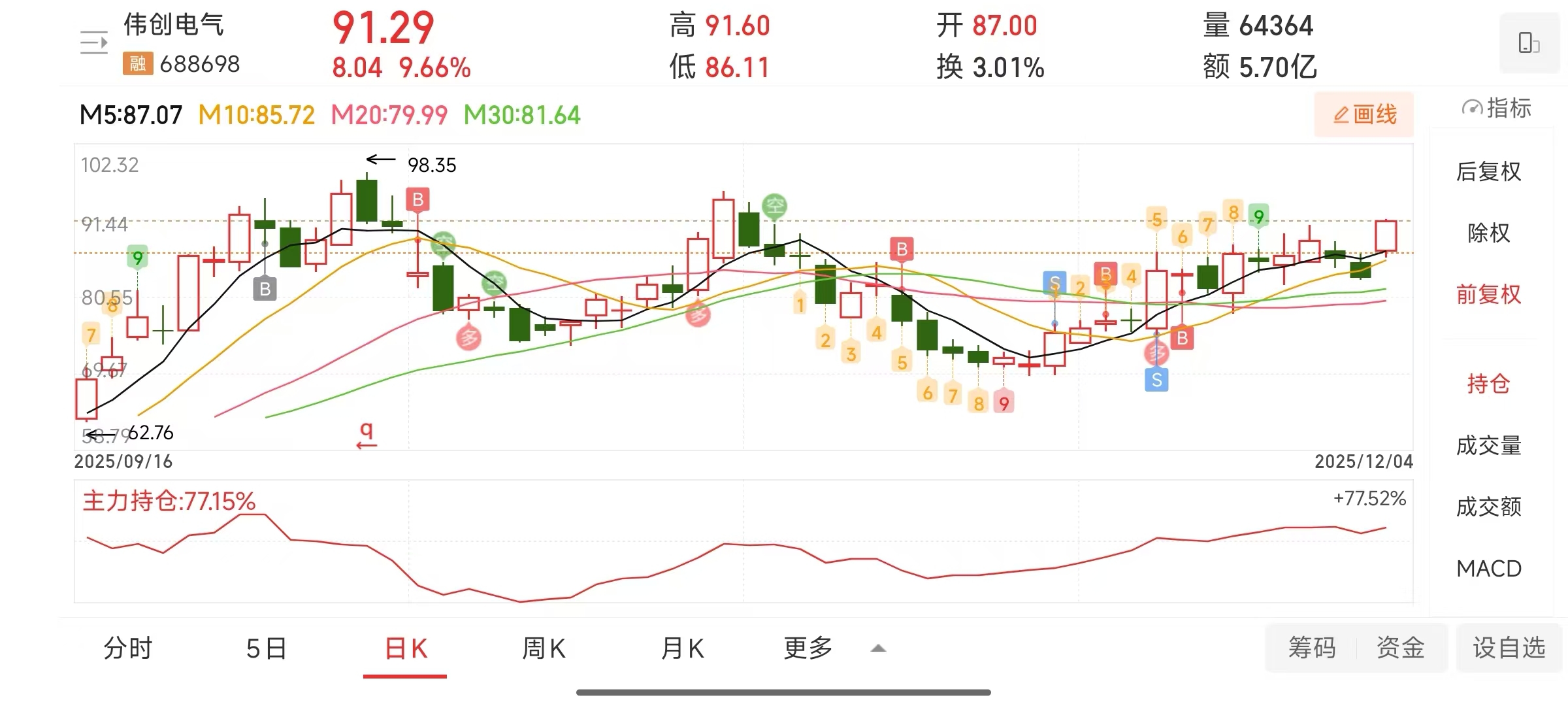 还得买我苏州本地股伟创电气,认识里面的员工,果然听他们员工的没错,50以下随便买