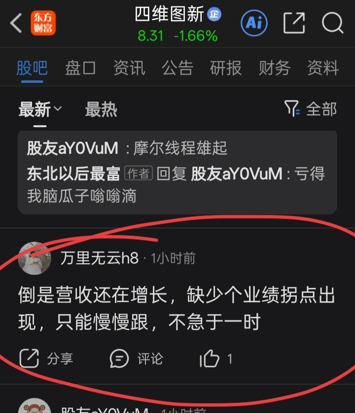 温馨提示: 1.根据《证券法》规定,禁止编造、传播虚假信息或者误导性信息,扰乱证券市场;2.用户在本社区发表的所有资料、言论等仅代表个人观点,与本网站立场无关,不对您构成任何投资建议。用户应基于自己的独立判断,自行决定证券投资并承担相应风险。《东方财富社区管理规定》