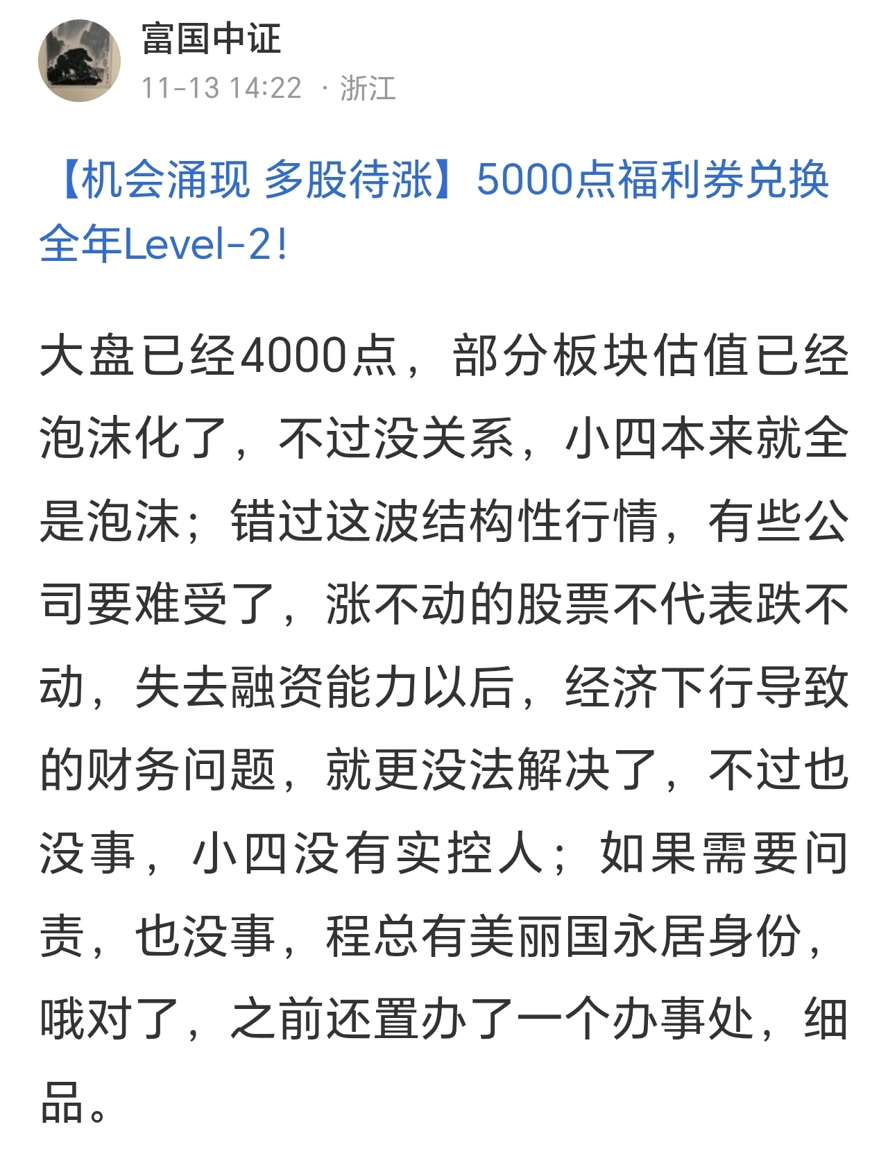 郑重声明:用户在财富号/股吧/博客等社区发表的所有信息(包括但不限于文字、视频、音频、数据及图表)仅代表个人观点,与本网站立场无关,不对您构成任何投资建议,据此操作风险自担。请勿相信代客理财、免费荐股和炒股培训等宣传内容,远离非法证券活动。请勿添加发言用户的手机号码、公众号、微博、微信及QQ等信息,谨防上当受骗!