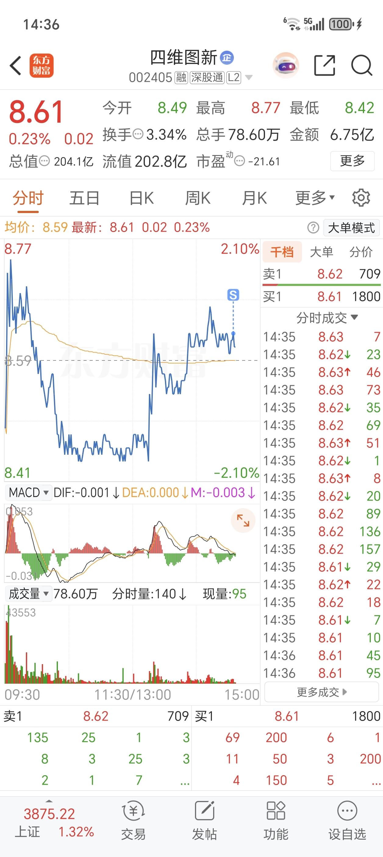 由于两点半没拉升,我宣布减持四维图新股份,在此再也不敢来,昨天最高点被套死