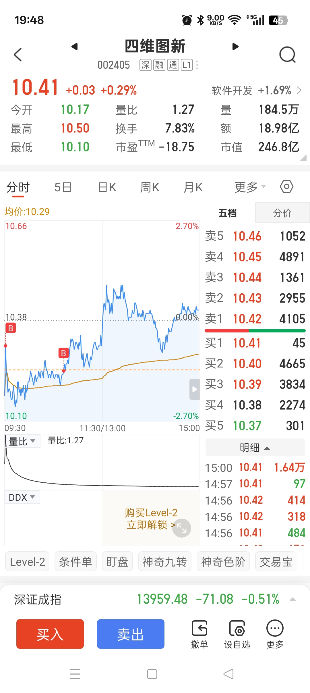 $四维图新(SZ002405)$ 看看明天怎么走 我先探探路