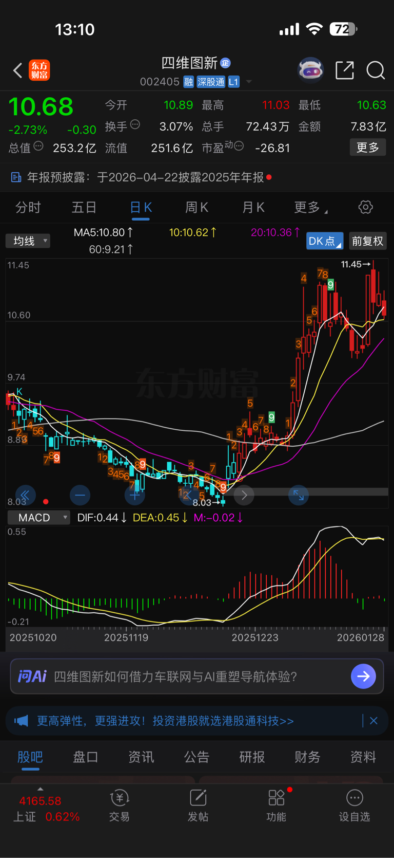 温馨提示: 1.根据《证券法》规定,禁止编造、传播虚假信息或者误导性信息,扰乱证券市场;2.用户在本社区发表的所有资料、言论等仅代表个人观点,与本网站立场无关,不对您构成任何投资建议。用户应基于自己的独立判断,自行决定证券投资并承担相应风险。《东方财富社区管理规定》