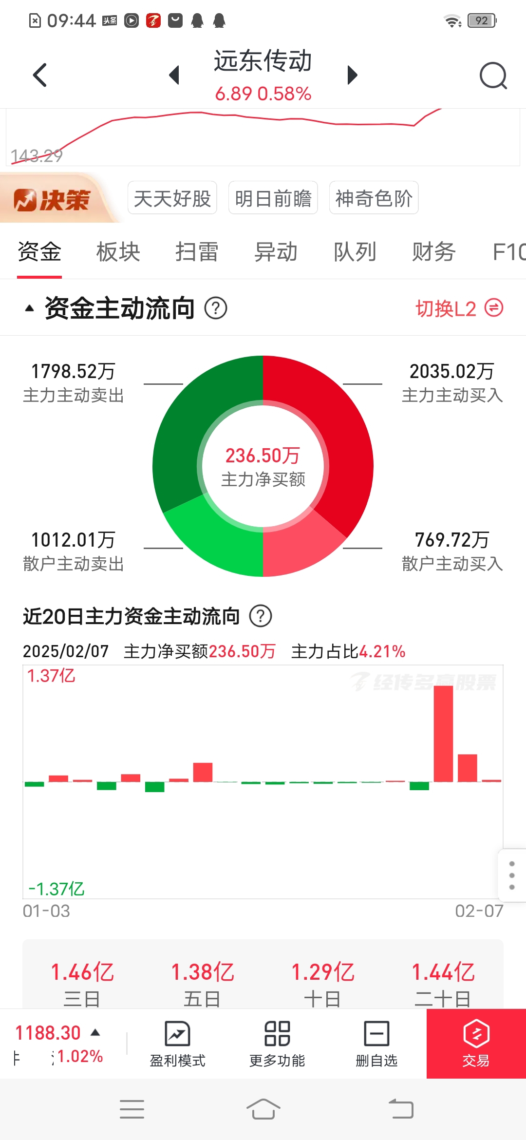 $远东传动(SZ002406)$ 散户卖的多。主力买的多。。