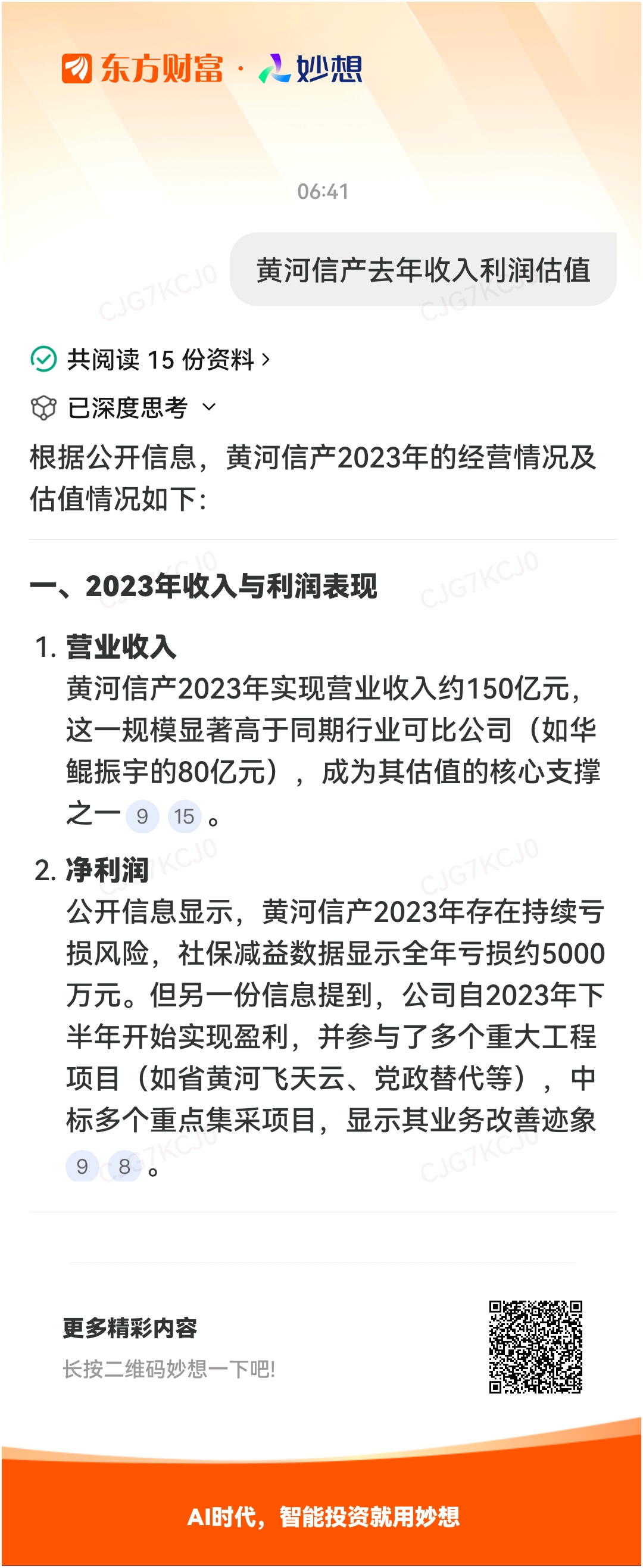 妙想一下:黄河信产去年收入利润估值。远东传动持有黄河信产权益价值180亿,其他7