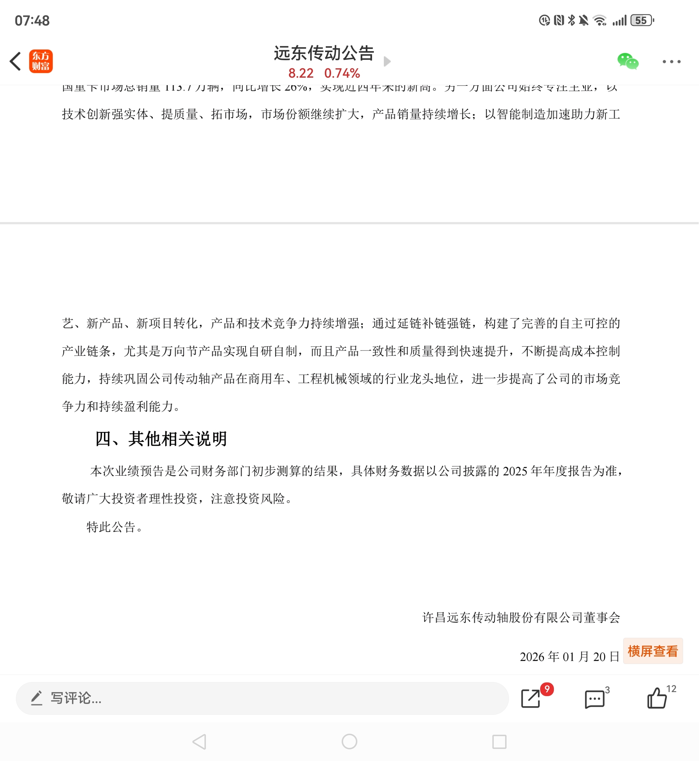 许昌远东传动轴股份有限公司董事会