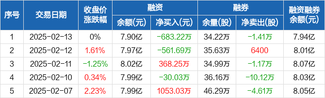 多氟多:融资净偿还683.22万元,融资余额7.9亿元(02-13)