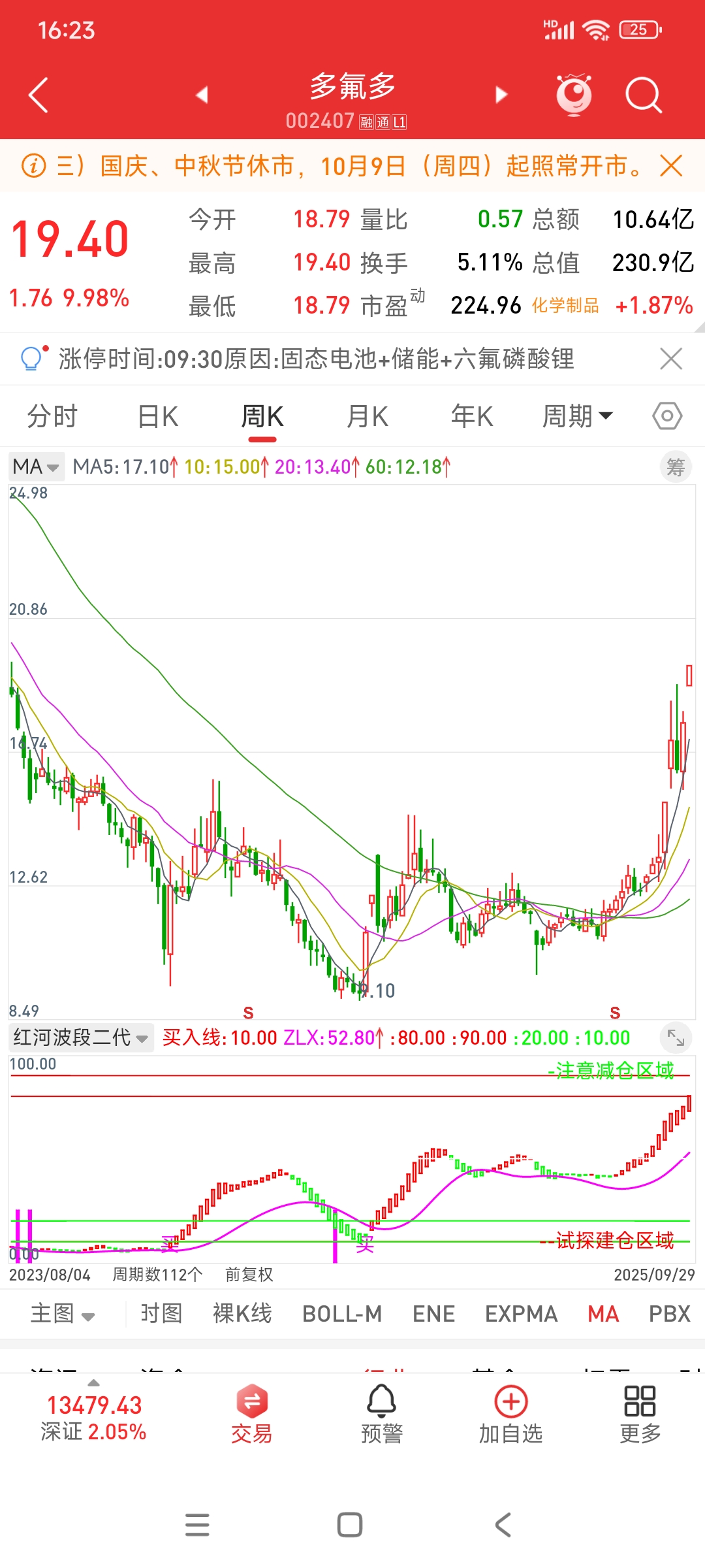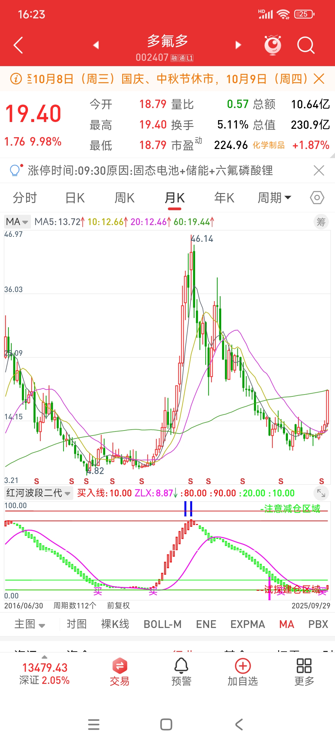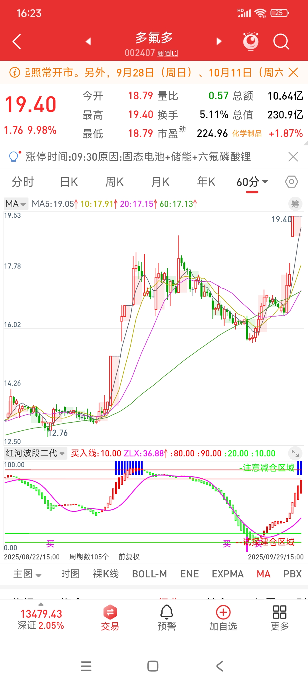 $多氟多(SZ002407)$ 这票周线月线都是红柱,说明大方向毫无疑问看涨没问题,其次前几天的回调只是60分钟级别顶部红柱转绿柱以后到底部绿柱转红住一个轮回而已,60分钟级别在底部调整完毕以后一路上扬,继续加速,毕竟红柱不停,上涨不止,红柱拉长,加速不止,继续冲