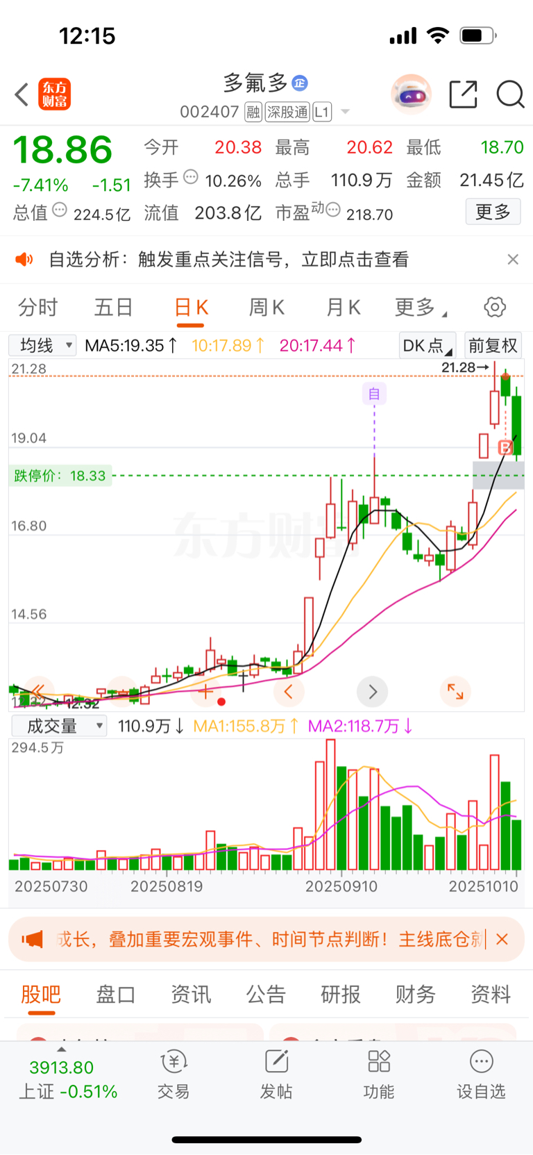 $多氟多(SZ002407)$ 我一买就跌,亏大了