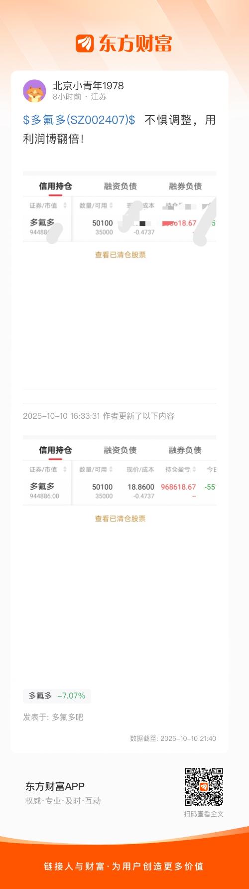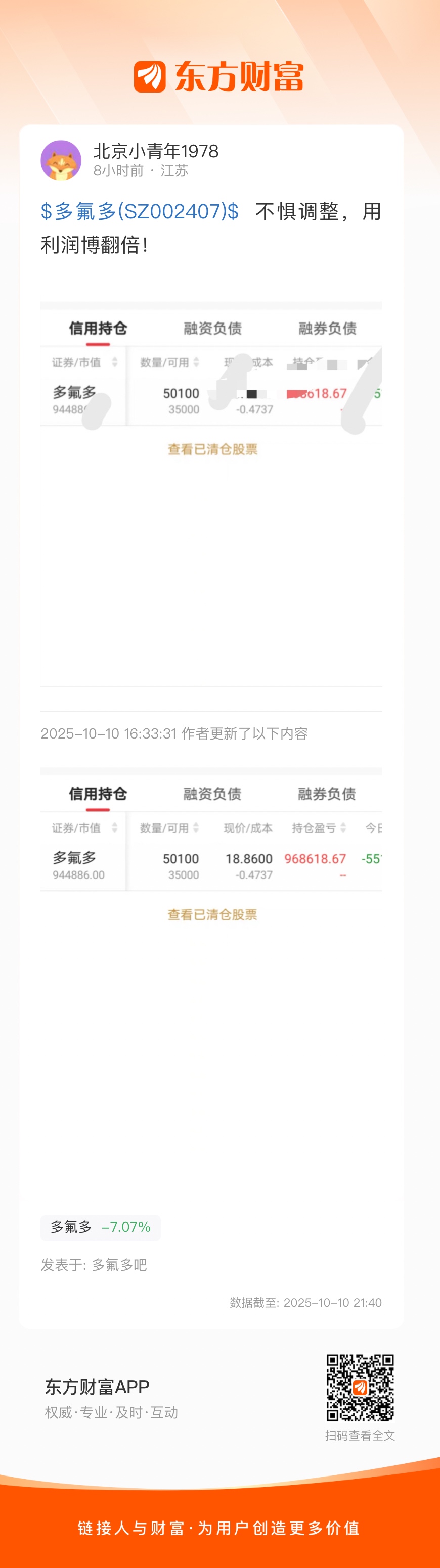 $多氟多(SZ002407)$  不惧调整,用利润博翻倍!