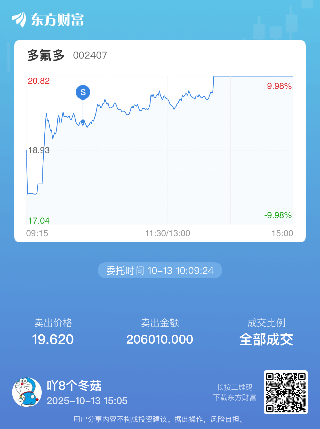 $多氟多(SZ002407)$ 难怪不涨,原来是我没卖